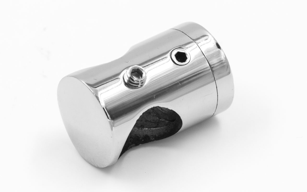 Ригеледержатель литой на стойку под плоскость, для трубы Ø16 мм. Деталь полированная, разборная, фиксация ригеля с помощью шестигранника