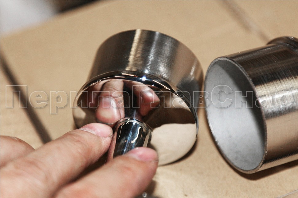 Наконечник палец на стойку Ø50.8х1.5 мм с регулируемым ложементом под поручень Ø50.8 мм, литой, полированный, нержавеющий AISI 304 k042