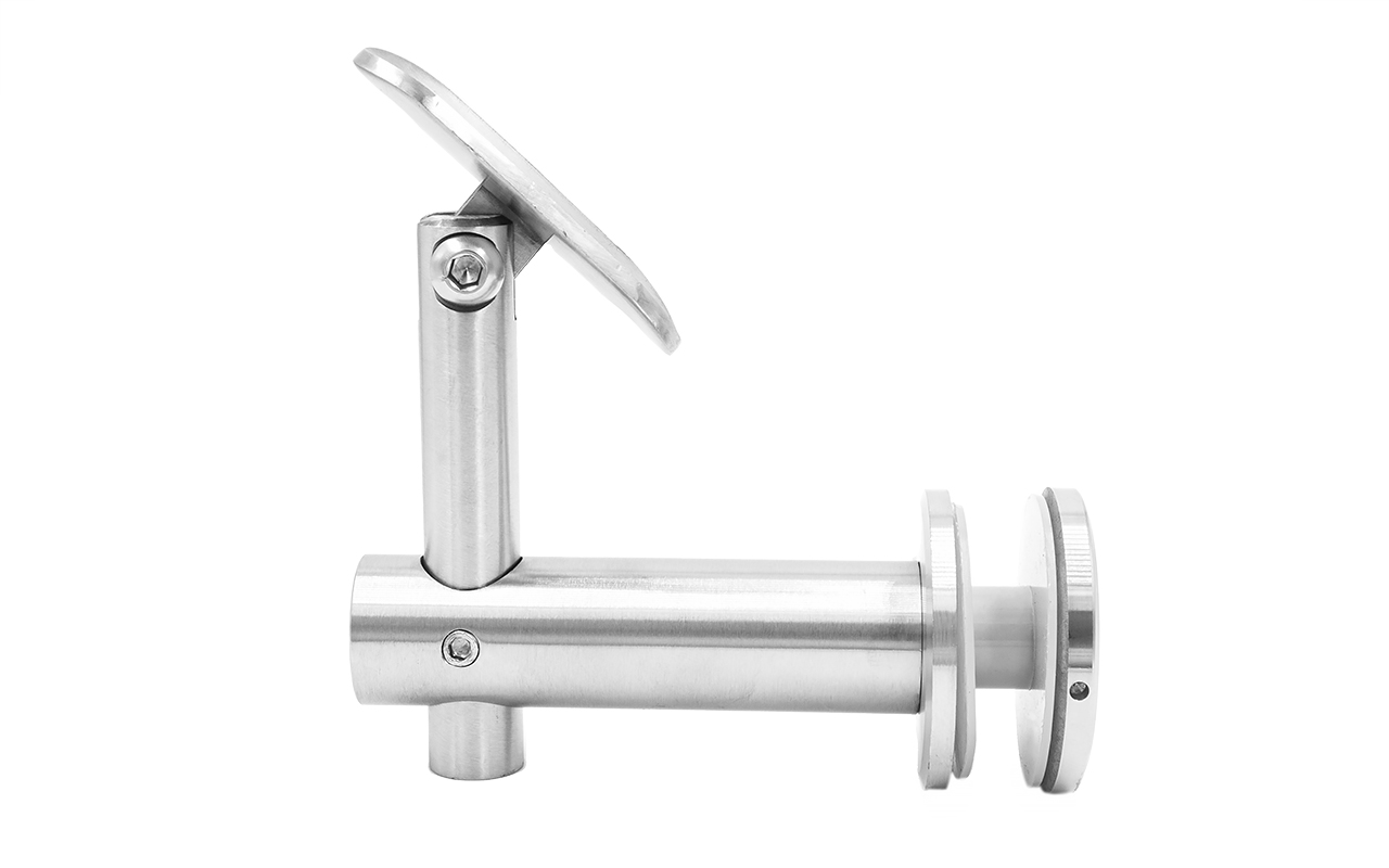 Выносной держатель поручня на стекло 8-20 мм, регулируемый, с ложементом, шлифованный, (AISI 304) k241