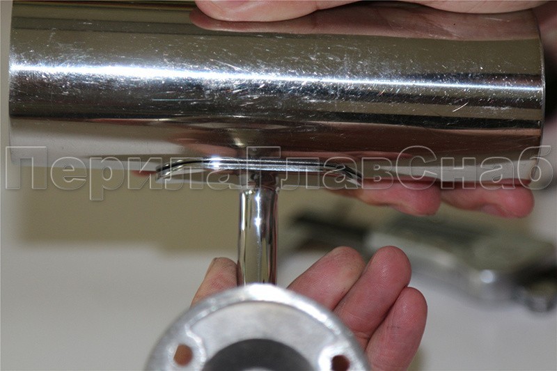 Поручень крепится к ложементу пристенка на саморезы, поэтому фитинг универсально подходит как для традиционных сварных ограждений, так и под самосбор. Благодаря оптимально подобранному выносу, пристенный поручень достаточно удален от поверхности стены, чтобы не задевать скользящей вдоль трубы поручня рукой идущего по лестнице человека. Но при этом поручень располагается близко к стене, дабы не сужать свободное пространство полезной ширины лестничного марша.
