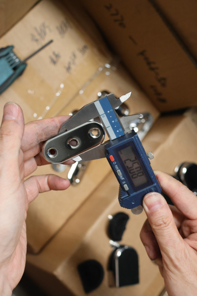 Наконечник на стойку из профильной трубы 40х40 мм, с регулируемым ложементом под плоскость, литой, полированный, нержавеющий AISI 304 k222-3 купить в Новосибирске