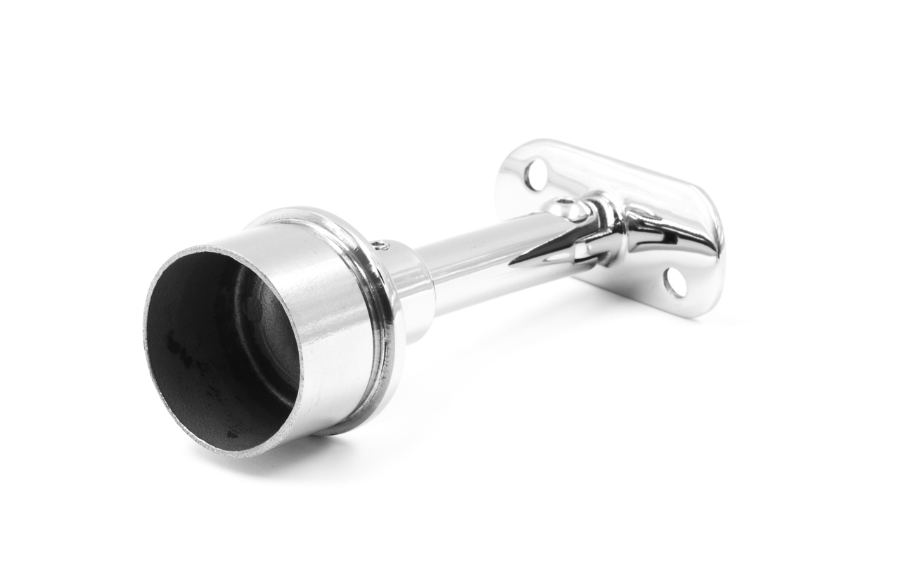 Если вы ни разу не устанавливали перила, то берите именно эту модель! Уникальность позиции заключается в том, что её можно регулировать по высоте и уставливать как на лестничных маршах, так и на горизонтальных поверхностях. Ложемент у данной модели идет с отверстиями под саморезы. Предназначен для стойки диаметром Ø38.1 мм (k819, k849) под поручень Ø50.8 мм. Можно крепить как на сварку, так и на специальный клей ( Ф1105, Ф1106, Ф1107).