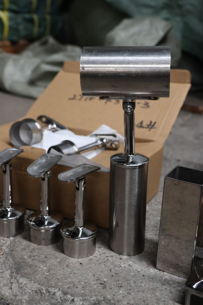 Наконечник стойки палец, Ø42.4 мм, с ложементом под поручень Ø38.1-42.4мм. Марка стали - AISI 304