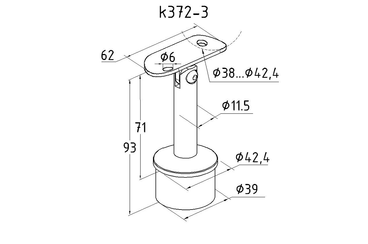 Наконечник стойки палец, Ø42.4 мм, с ложементом под поручень Ø38.1-42.4мм (aisi 304), k372-3