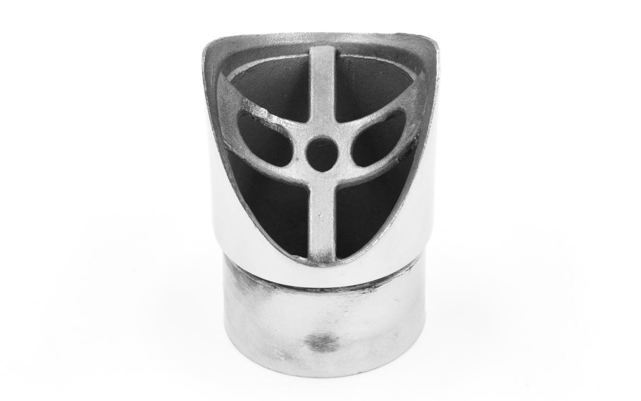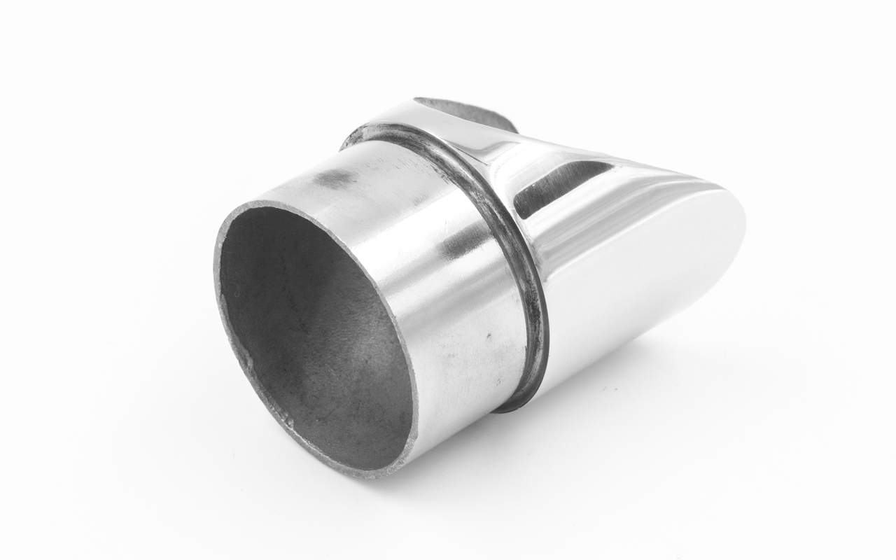 Наконечник седловина косая 30° на стойку диаметр 50.8 мм, под поручень диаметром 50.8 мм. Деталь литая, полированная. Марка стали - AISI 304
