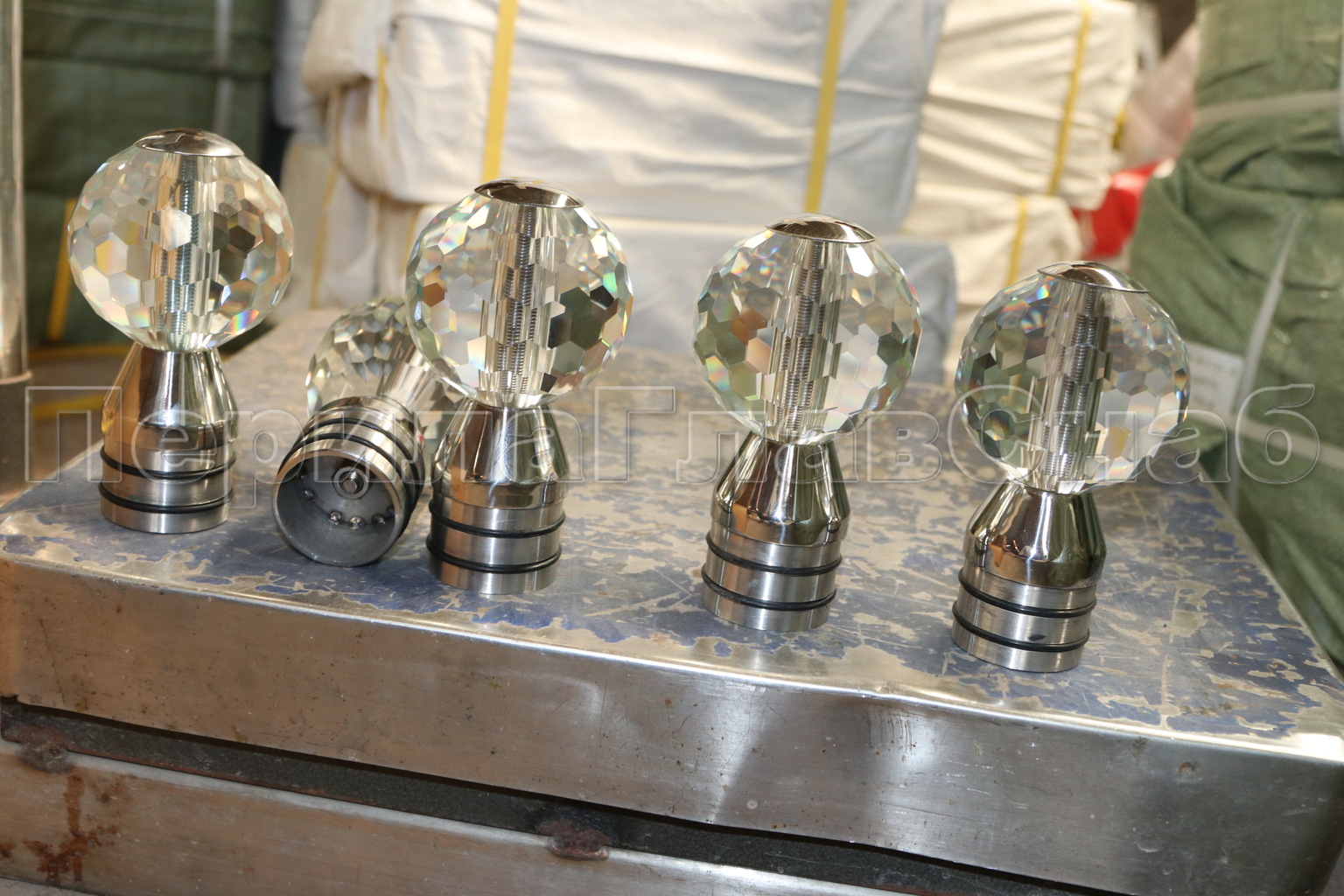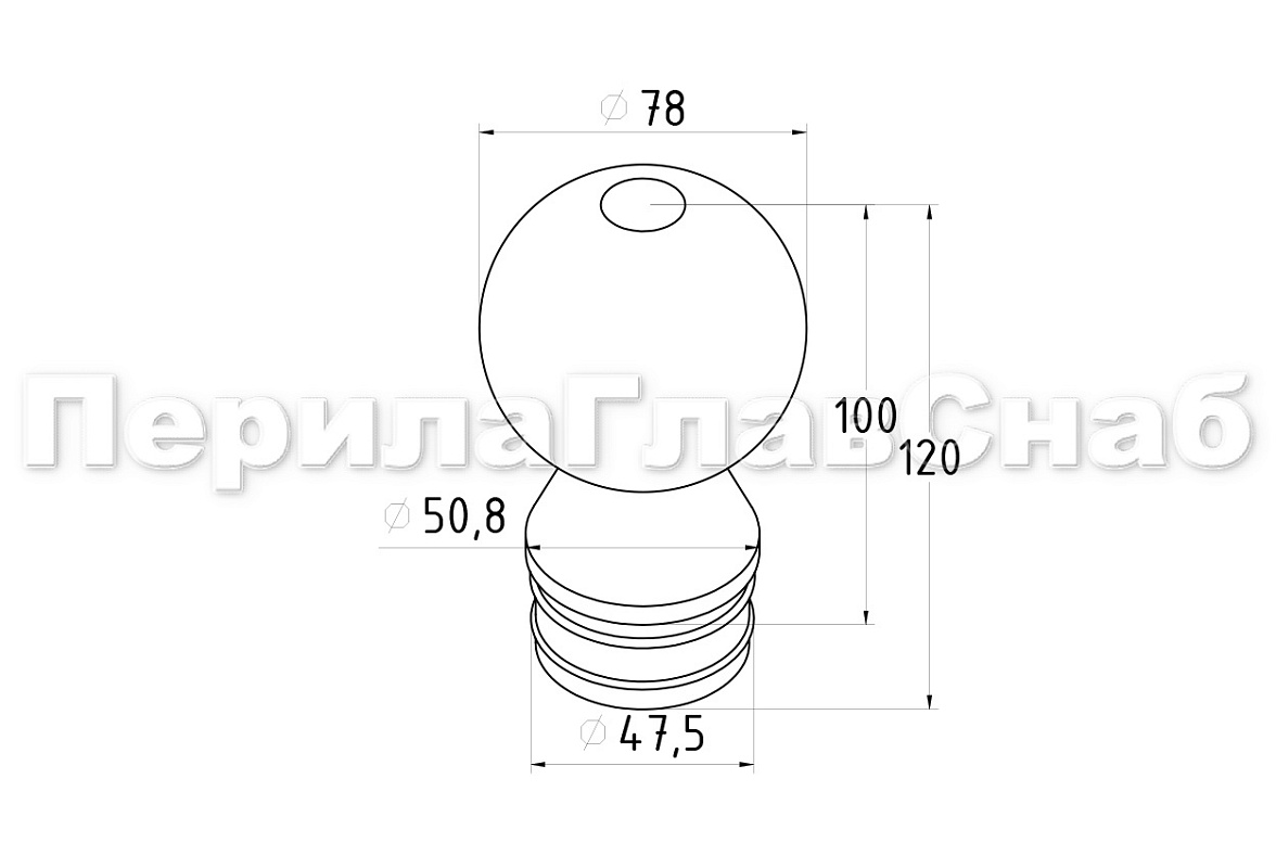 Стеклянный шар, наконечник на стойку диаметром 50.8 мм, с алюминиевой системой фиксации, прозрачный. Деталь литая, полированная. Марка детали - AISI 304