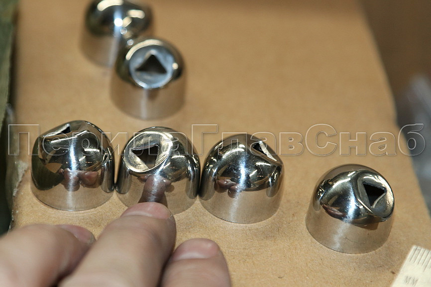 Наконечник штампованный (СПС) косой 30° на трубу Ø19 мм, для поручня Ø38.1-50.8 мм. Деталь полированная 400 Grit, нержавеющая. Марка стали - AISI 304