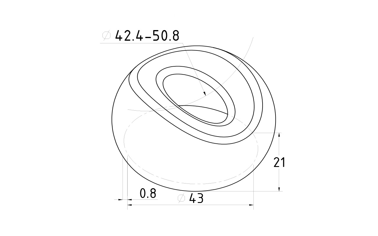 Наконечник штампованный (СПС) прямой 90° на трубу Ø42.4 мм, для поручня Ø50.8 мм, полированный, нержавеющий, AISI 304, k321-2