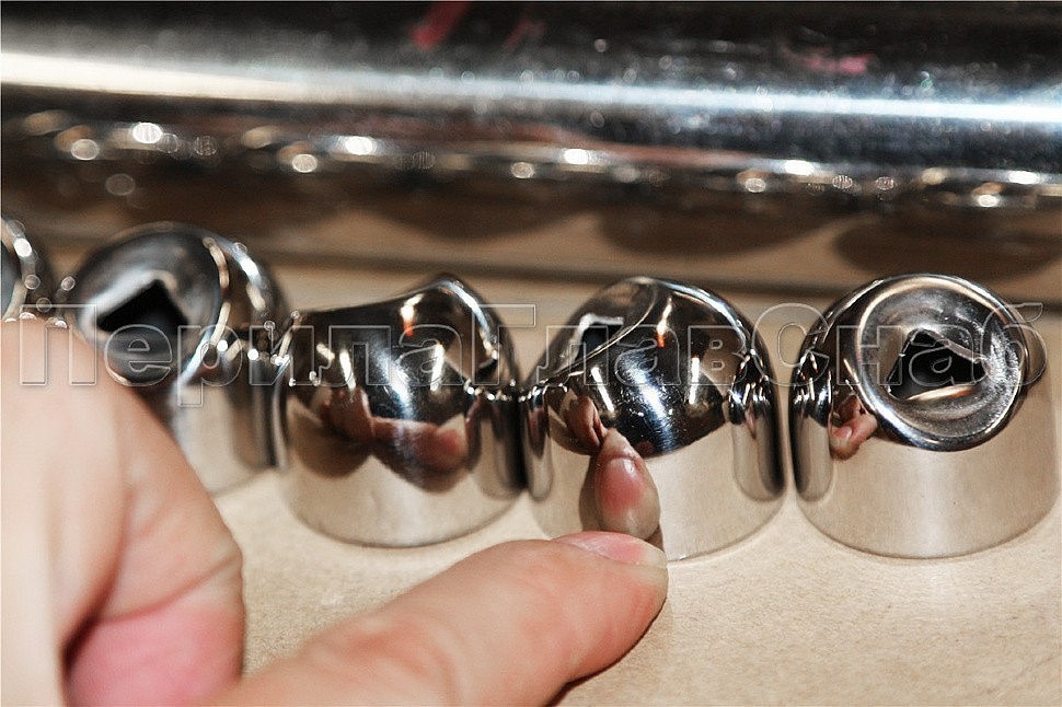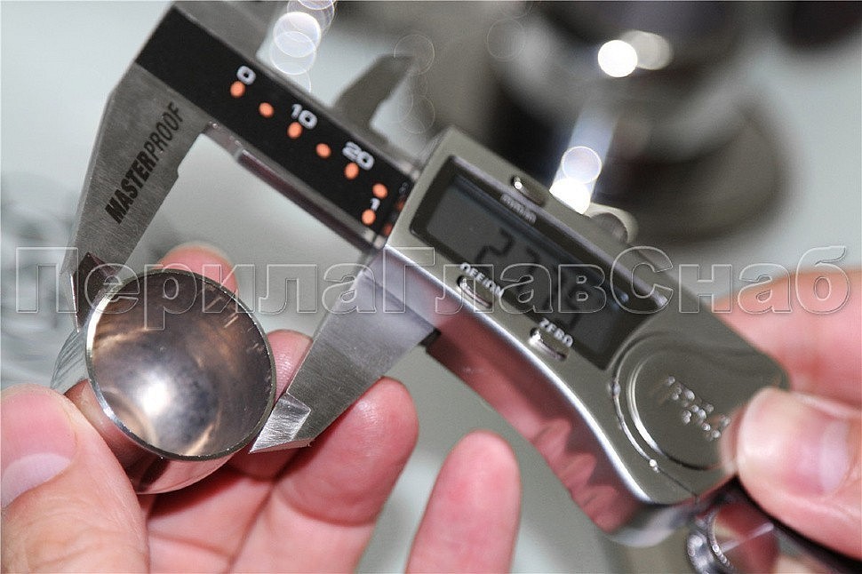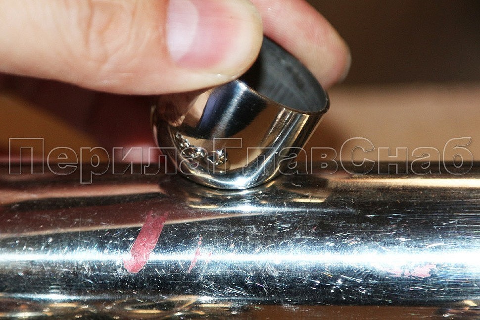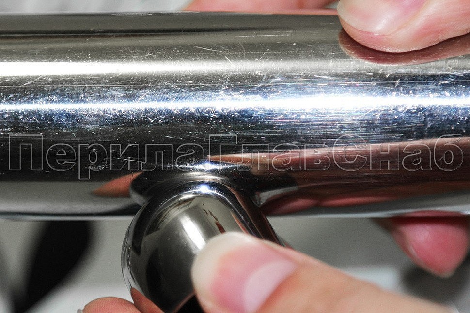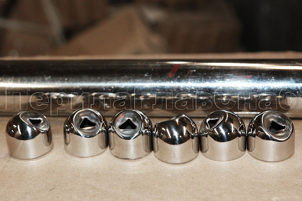 Наконечник штампованный (СПС) косой 30° на трубу Ø25 мм, для поручня Ø38.1 мм, полированный, нержавеющий, AISI 201, k072-3