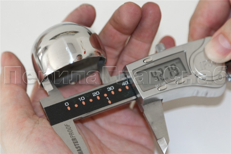 Наконечник штампованный (СПС) прямой 90° на трубу Ø42.4 мм, для поручня Ø50.8 мм, полированный, нержавеющий, AISI 304, 600Grit, k321