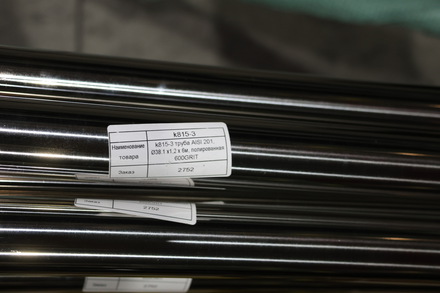 k815-3 труба AISI 201, Ø38.1х1.2х6000 мм, полированная 600GRIT