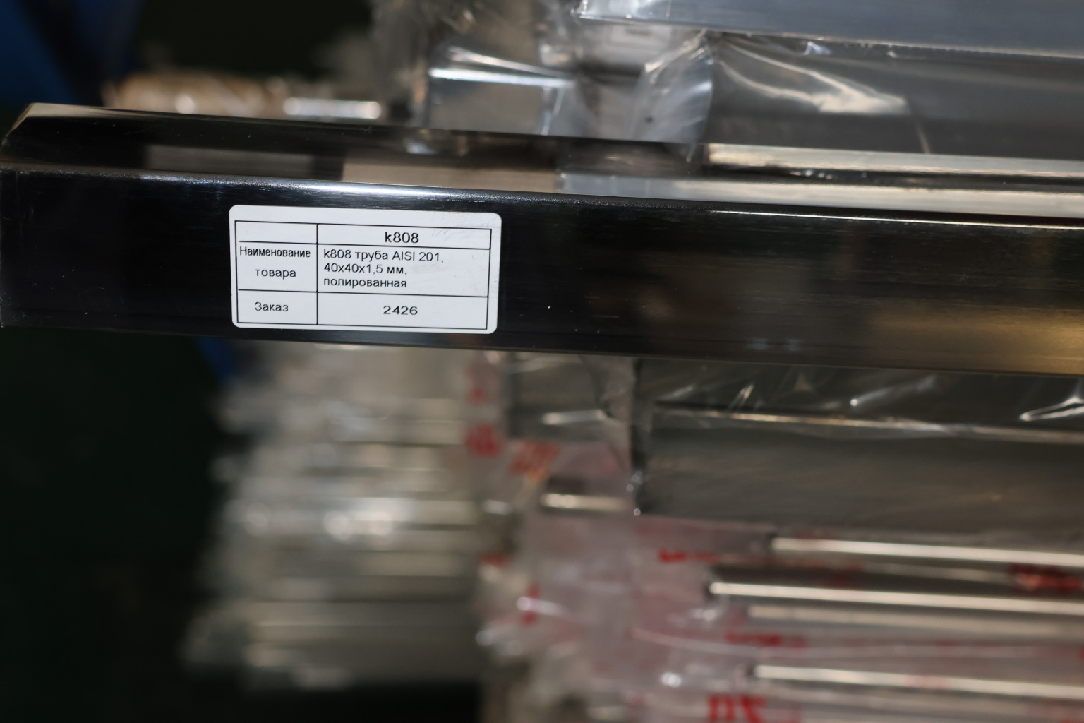 Труба профильная нержавеющая AISI 201, 40х40 мм, тройная полировка 800GRIT k808
