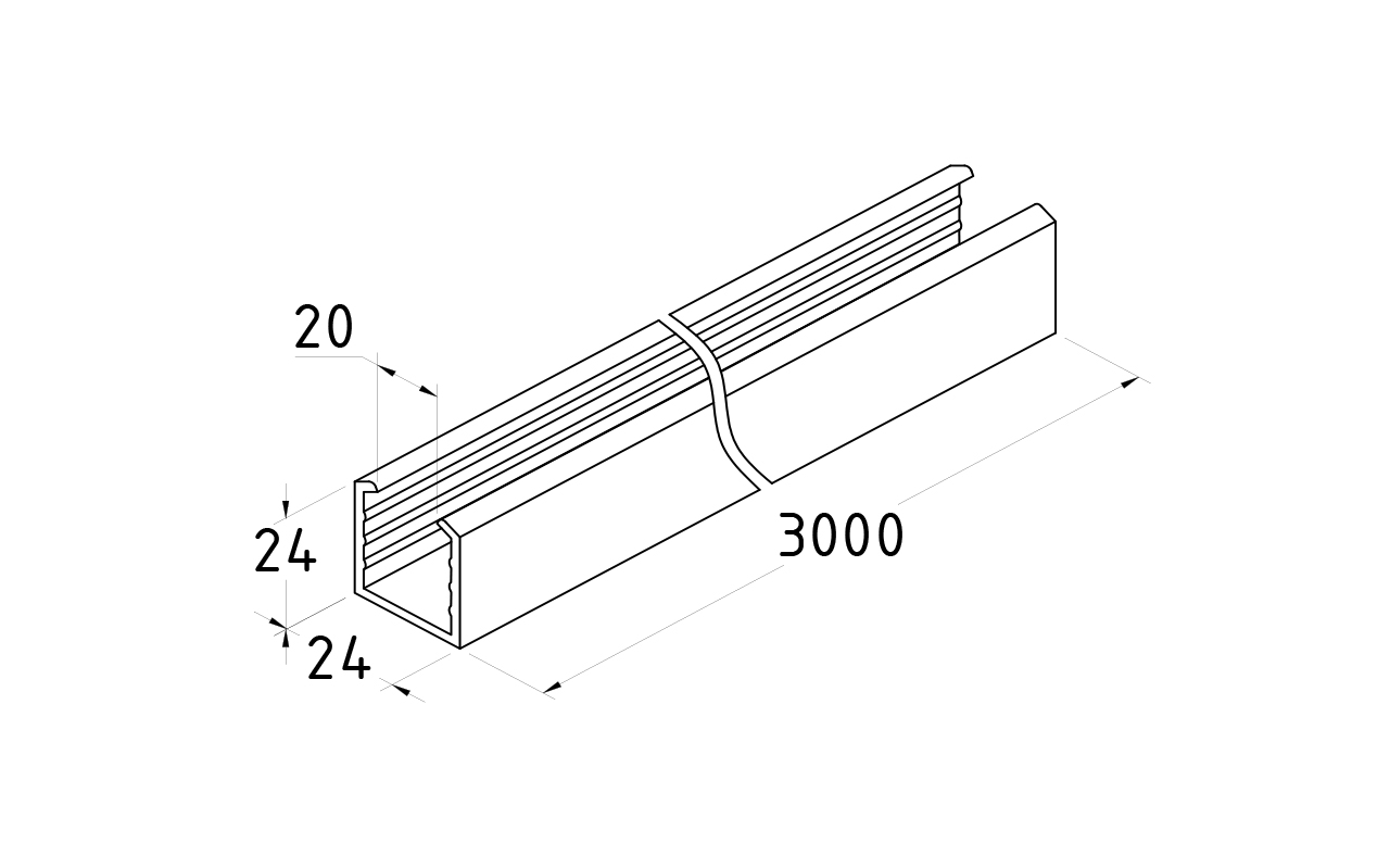 Уплотнитель в поручень с пазом 24х24 для стекла 10+10мм ПВХ, черный
