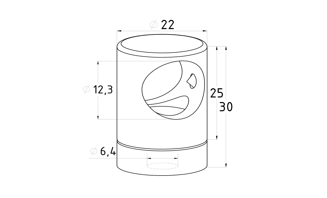 Ригеледержатель на стойку под плоскость Ø16 мм, литой, Ø22х30 мм, полированный, (AISI 304) k065-2