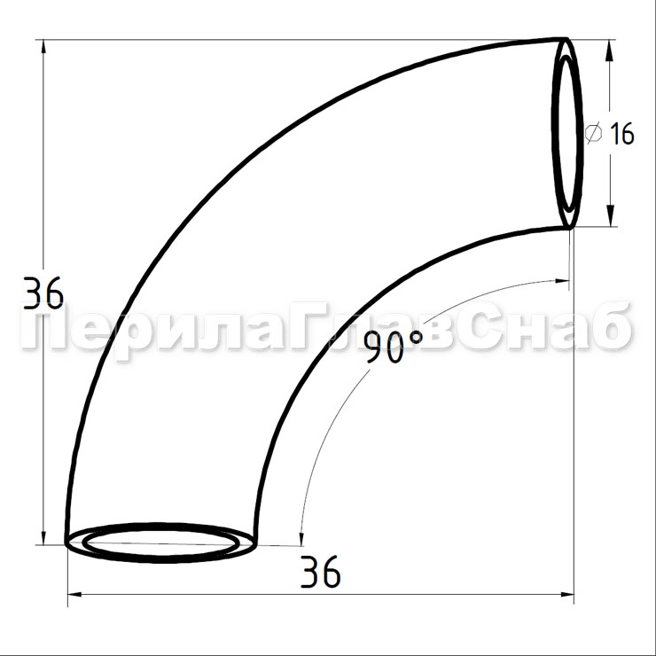 Отвод поручня под сварку Ø38.1х1.45 мм, 90°, полированный 400 Grit, (AISI 201) k095-6