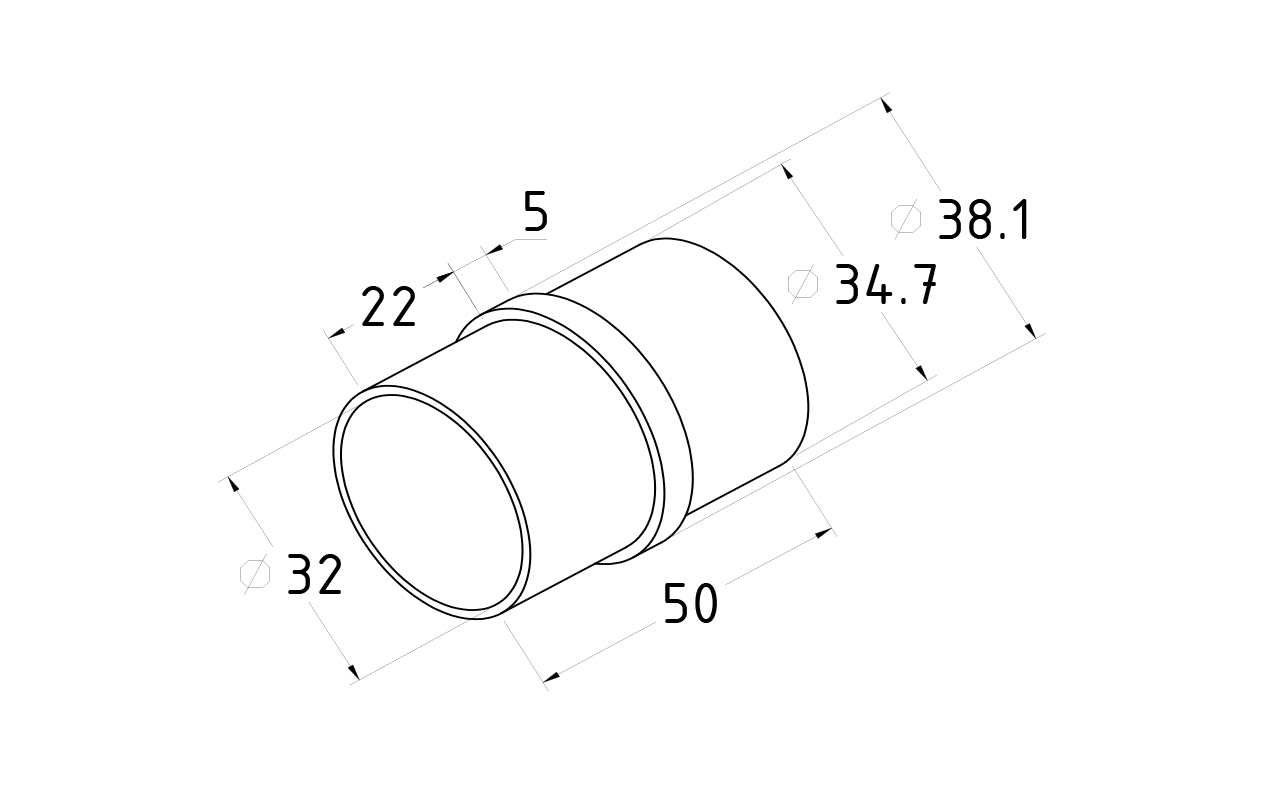 Применяется для скрытого, внутреннего соединения труб O38.1 нержавеющего поручня. В корпусе сделаны углубления в виде нарезки для удобства монтажа и надежной фиксации детали внутри трубы. В итоге получается красивое соединение двух половинок поручня через небольшую проставку в виде кольца шириной 5 мм.