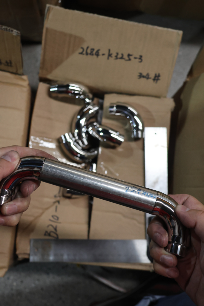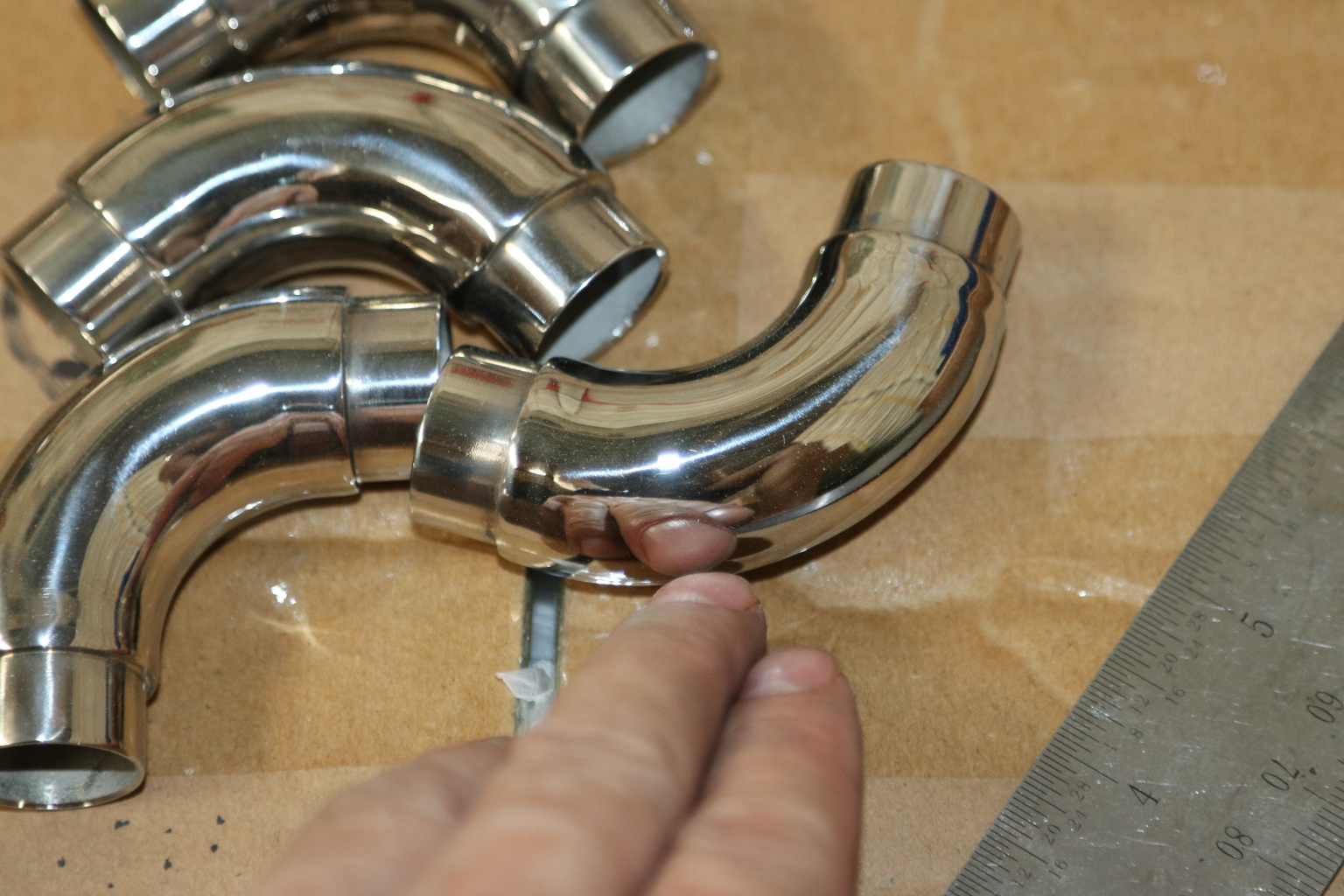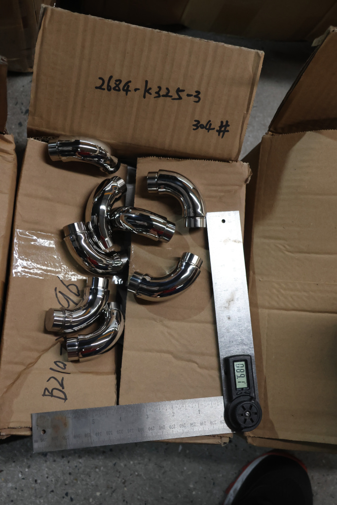 Отвод трубы Ø25.4 мм со вставками, удлиненный, полированный (AISI 304)