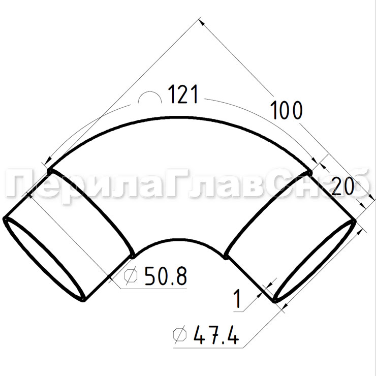 Поворот 90° поручня Ø50.8х1.5 мм, корпус литой, вставки вварены под самосборные ограждения