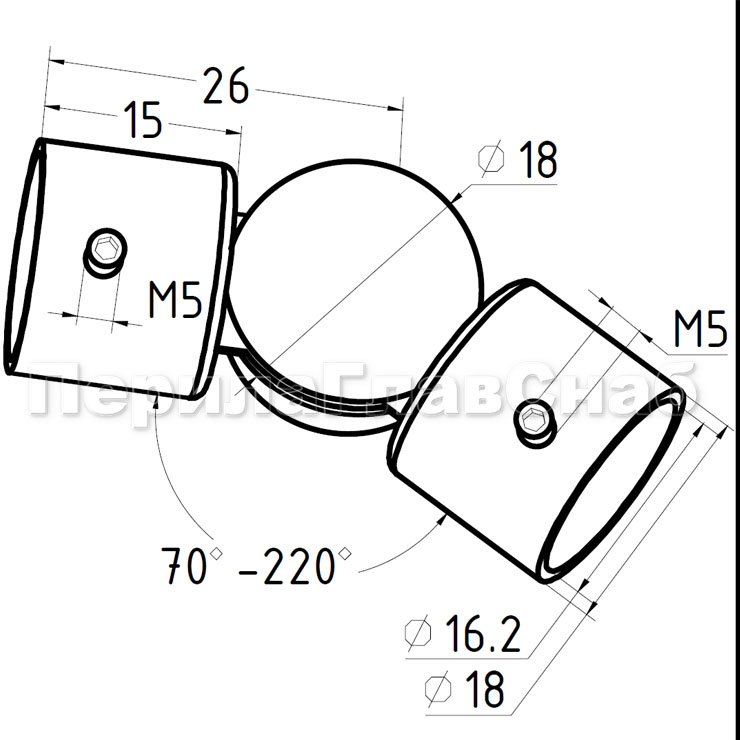 применяется во время монтажа самосборных ограждений из нержавейки для наружного соединения ригельных струн Ø16 мм. Фитинг выполнен из нержавеющей стали, пригодной для применения на улице, вне помещений. Деталь используется монтажниками для завязки нержавеющих ригелей на поворотах ограждения. Для применения на уличных конструкциях лучше подварить фитинг к трубке тетивы ригеля, дабы не провоцировать вандалов расхитить комплектующие с готового ограждения. Патрубки фитинга надеваются прямо на ригель и фиксируются штатными стопорными винтами, входящими в комплект поставки. В качестве альтернативы наружного поворота можно использовать более мощный, литой регулируемый нержавеющий фитинг k060.