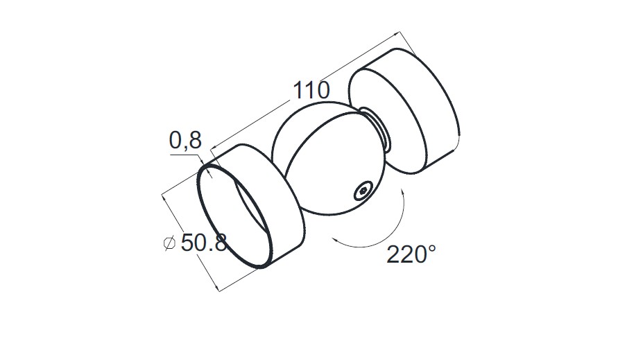 Поворот деревянного/пластикового поручня, шаровый под Ø49х0.8 мм, полированный