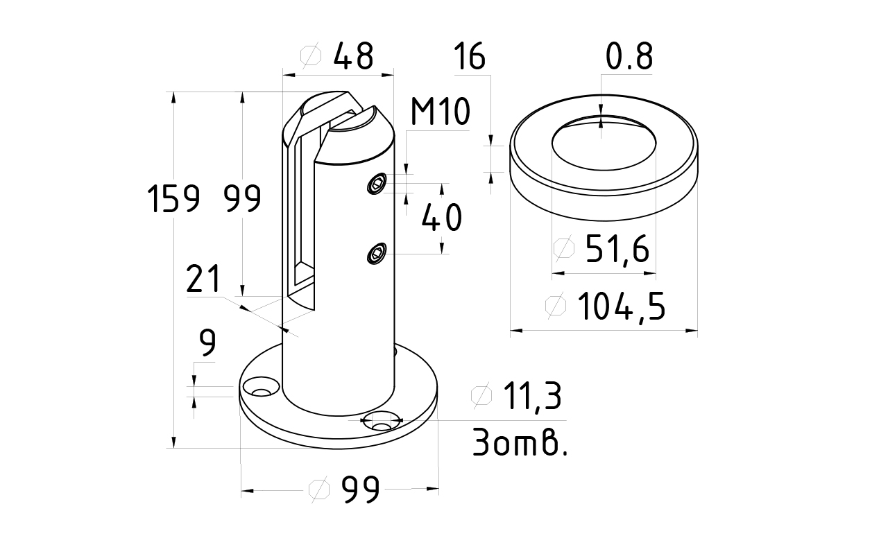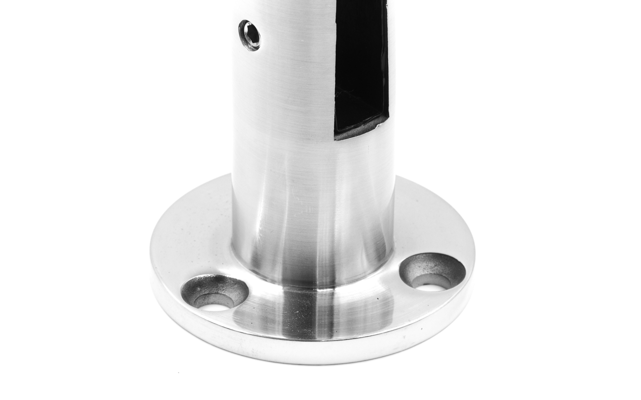 Напольный нержавеющий стеклодержатель предназначен для монтажа ограждений со стеклом от 16 мм. Изготовлен из 304 марки стали, что позволяет монтировать его не только внутри помещения, но и на улице и у бассейнов.