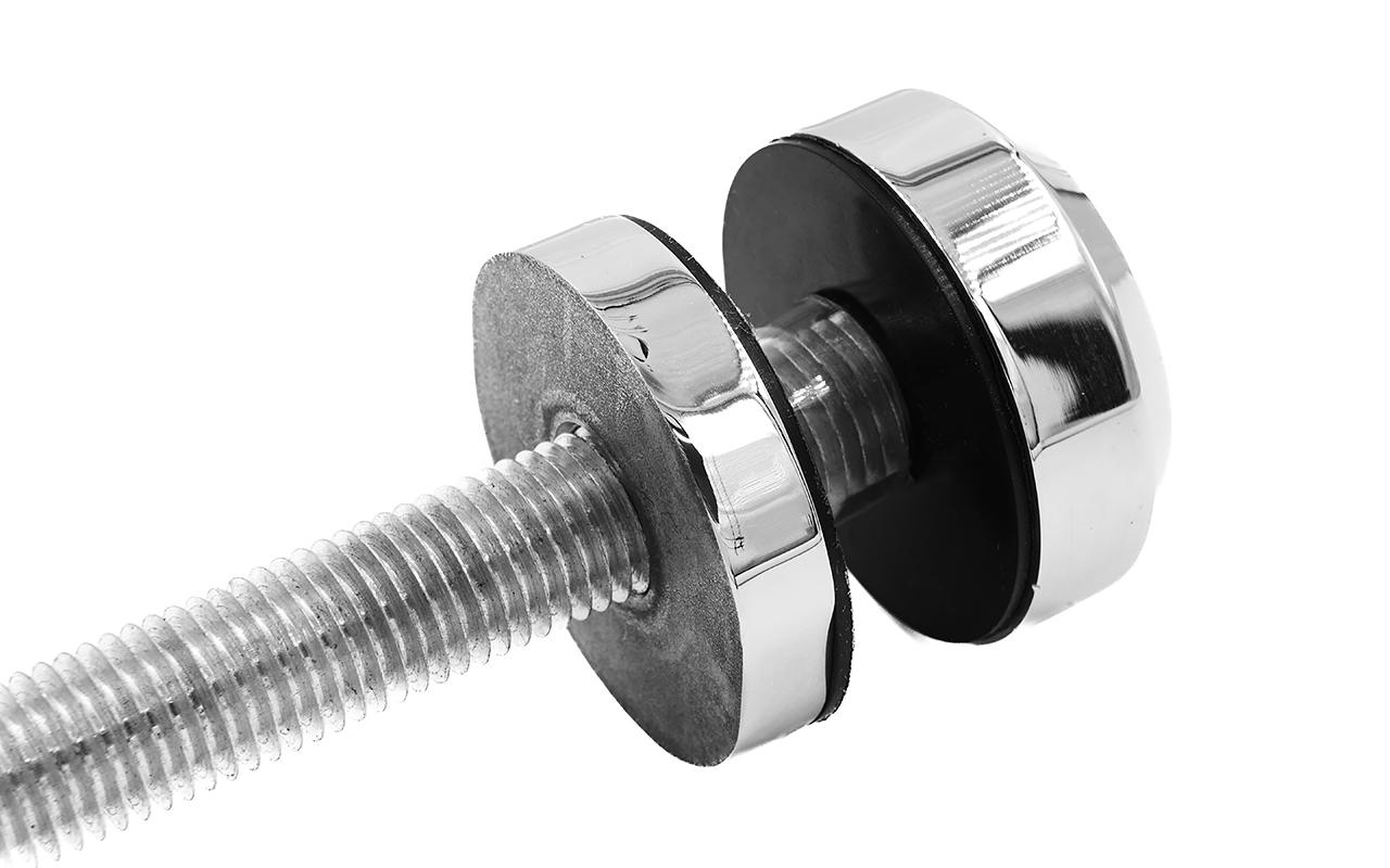 Точечный стеклодержатель для торцевого крепления несущего стекла в широчайшем диапазоне от 8 (4+4) мм до 40 (20+20) мм. Диаметр наружной (хрюшка) и внутренней шайб по 50 мм.