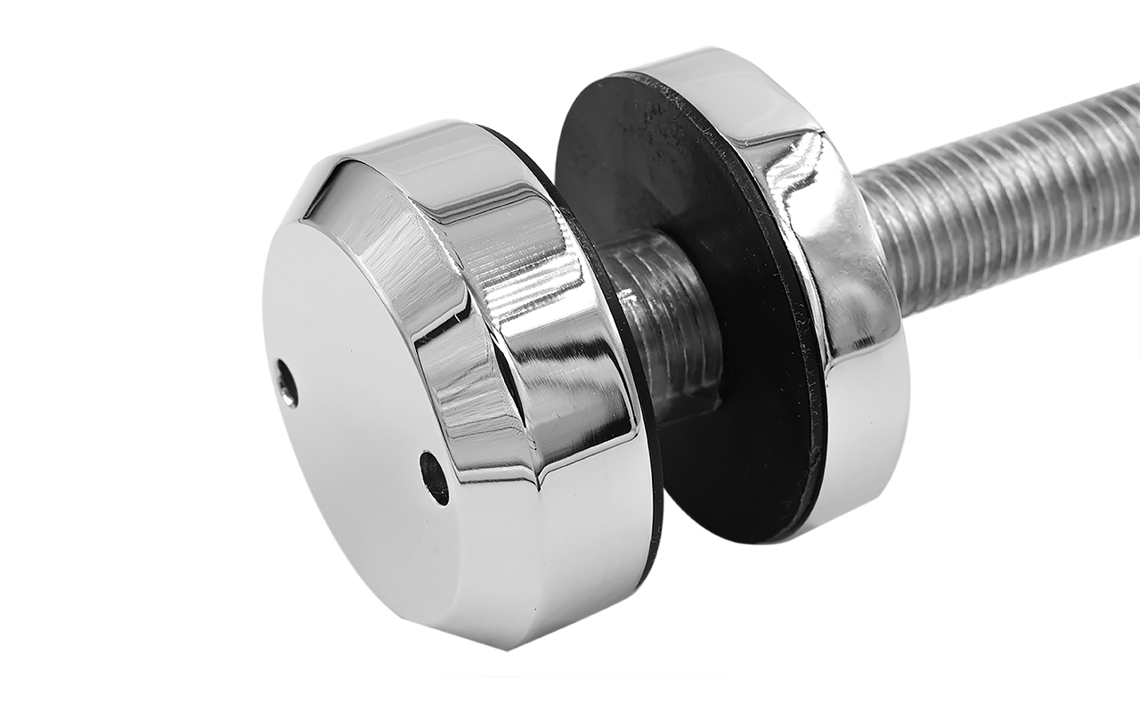 Стеклодержатель Ø50х10х18, шпилька М16х205 мм, для стекла 8-40 мм, AISI (201), с возможностью регулировки выноса до 65 мм, для торцевого крепления стекла, полированный, литой k277-3 купить в Новосибирске