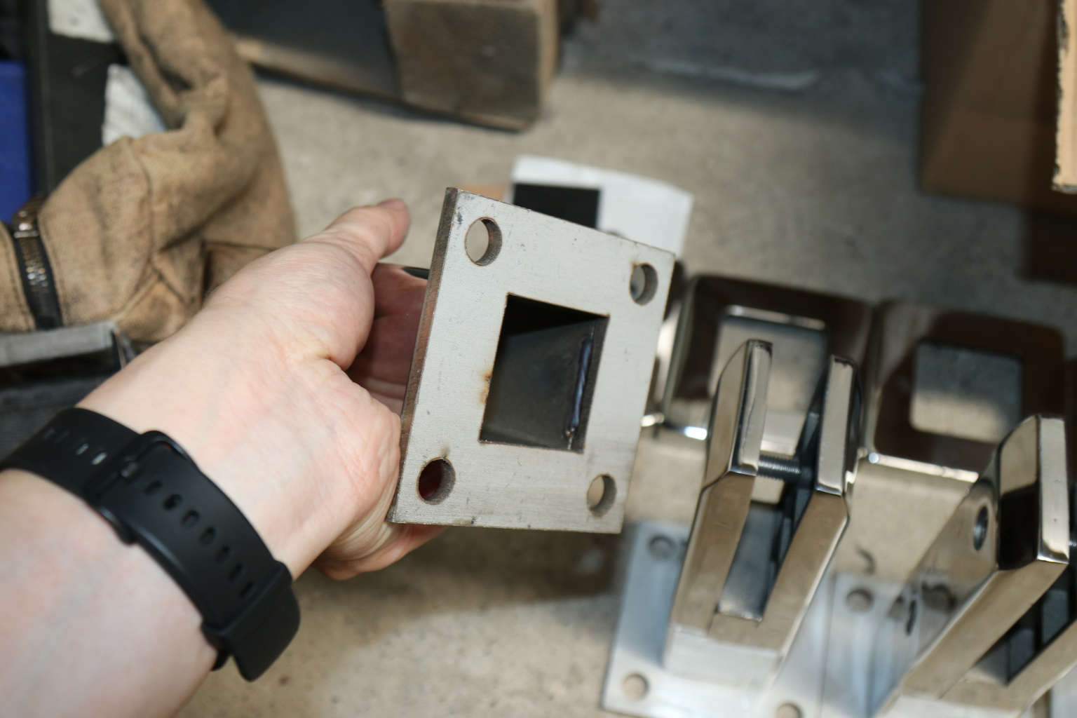 Стеклодержатель напольный 50х50х190 мм, литой, плоский, для стекла 10-12 мм, нержавеющая сталь AISI 304, полированная k275-2