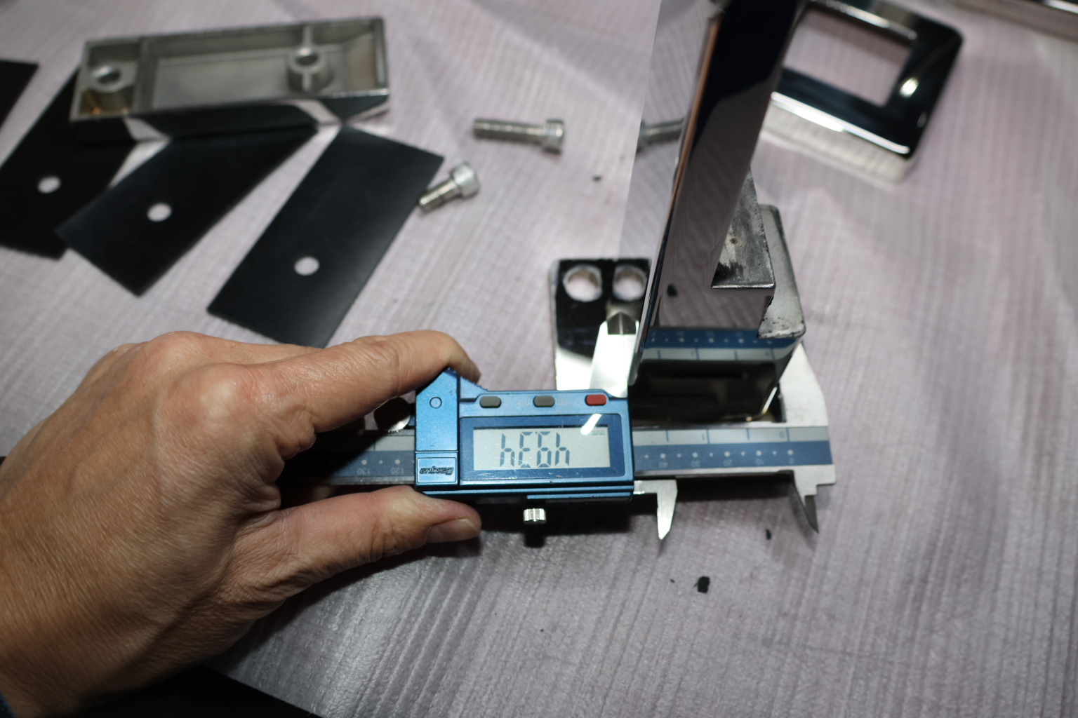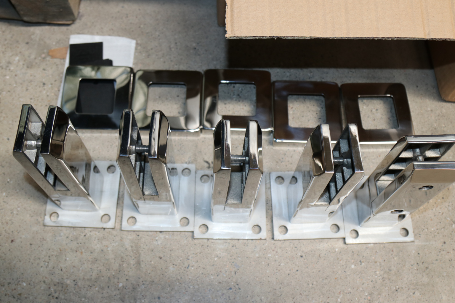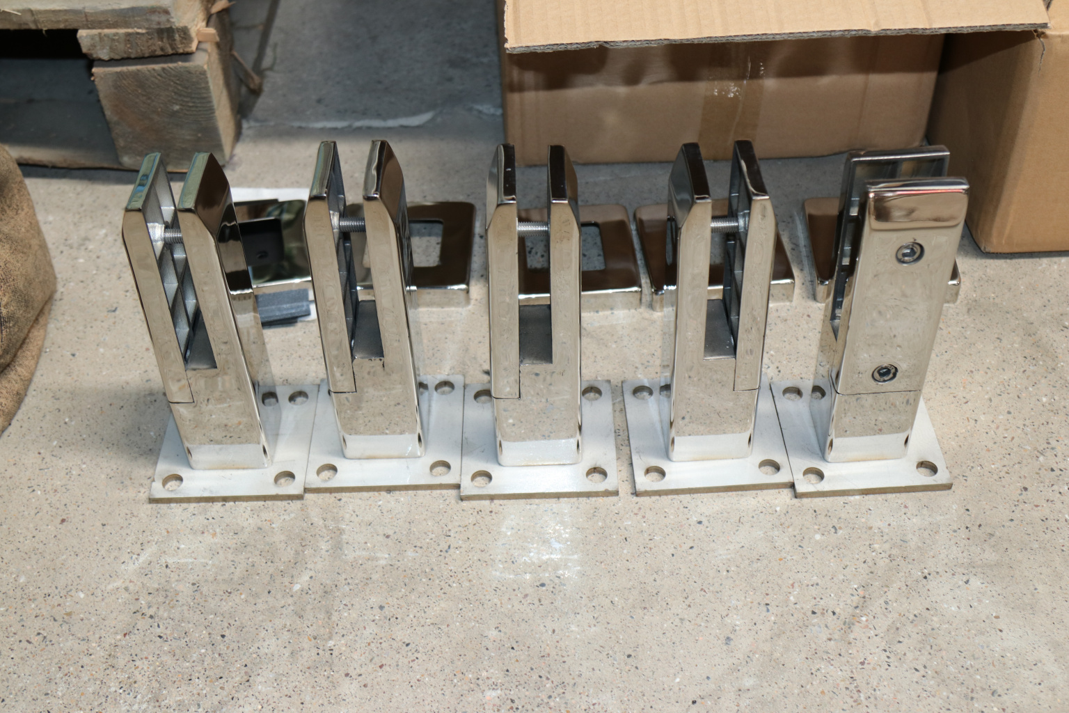 Стеклодержатель литой напольный, плоский 50х50х190 мм, для стекла 10-12 мм, полированный. Марка стали - AISI 304. Вам понадобиться для крепежа потайной винт под шестигранник k601-19-120. Необходимо отверстие в стекле- 16 мм.