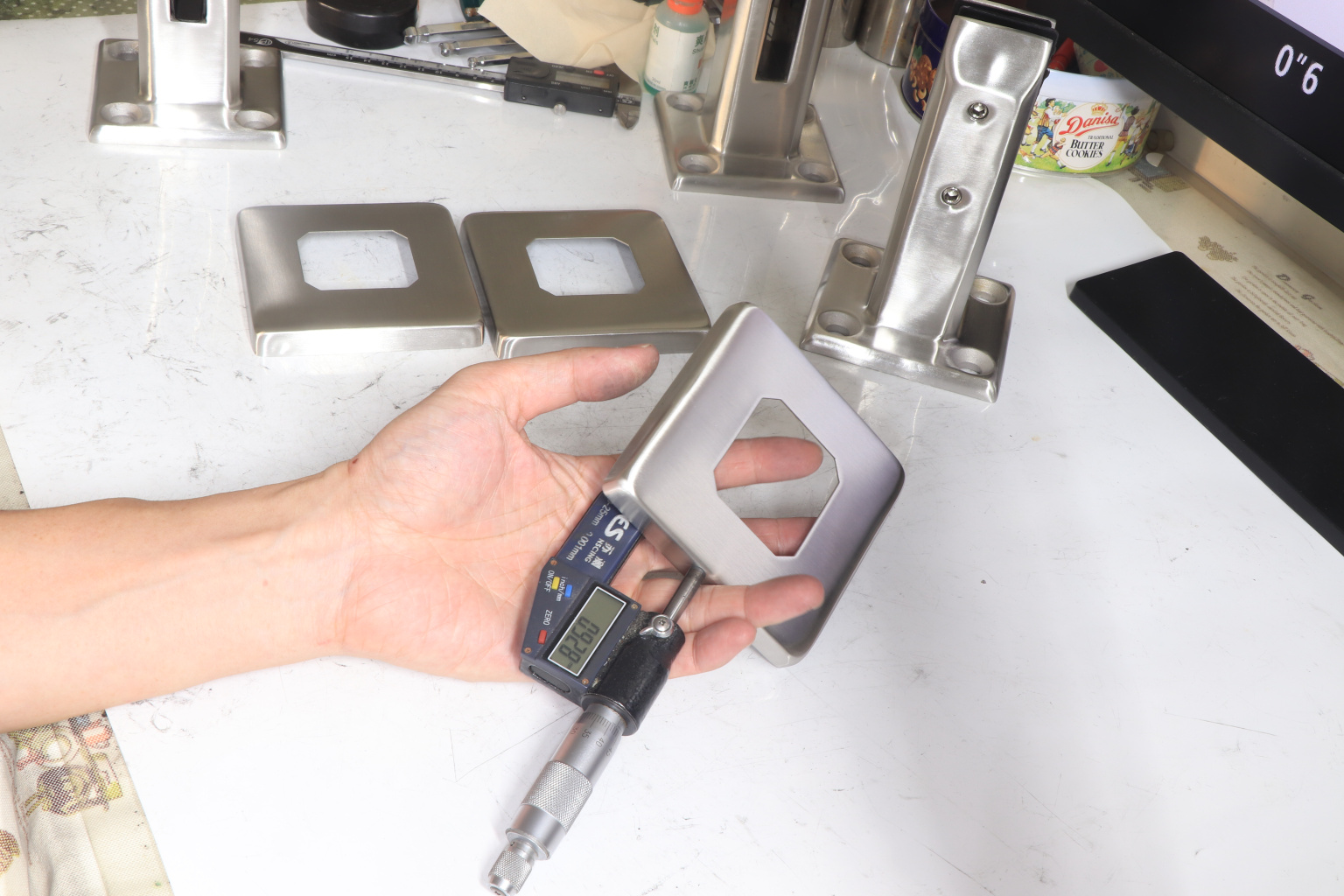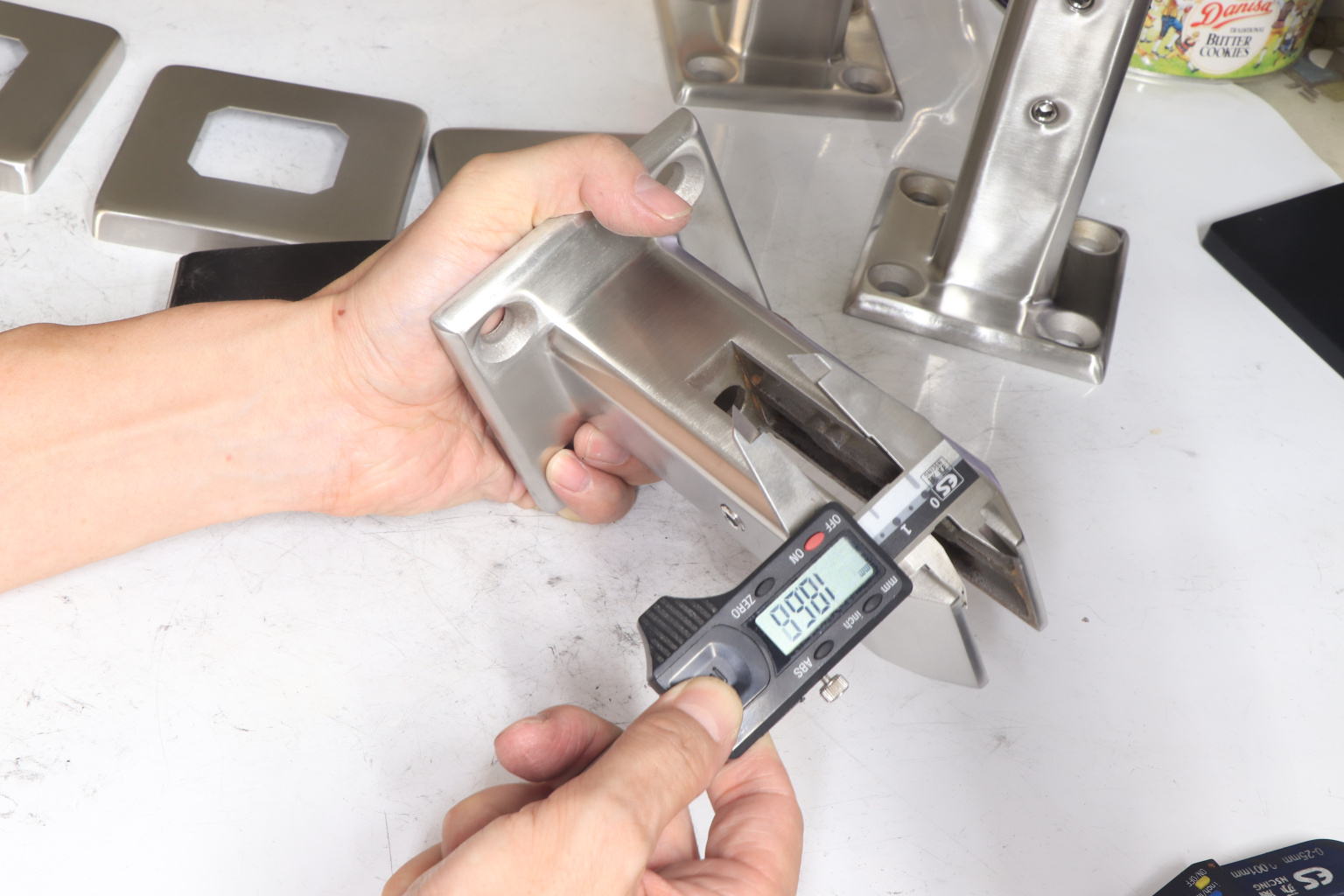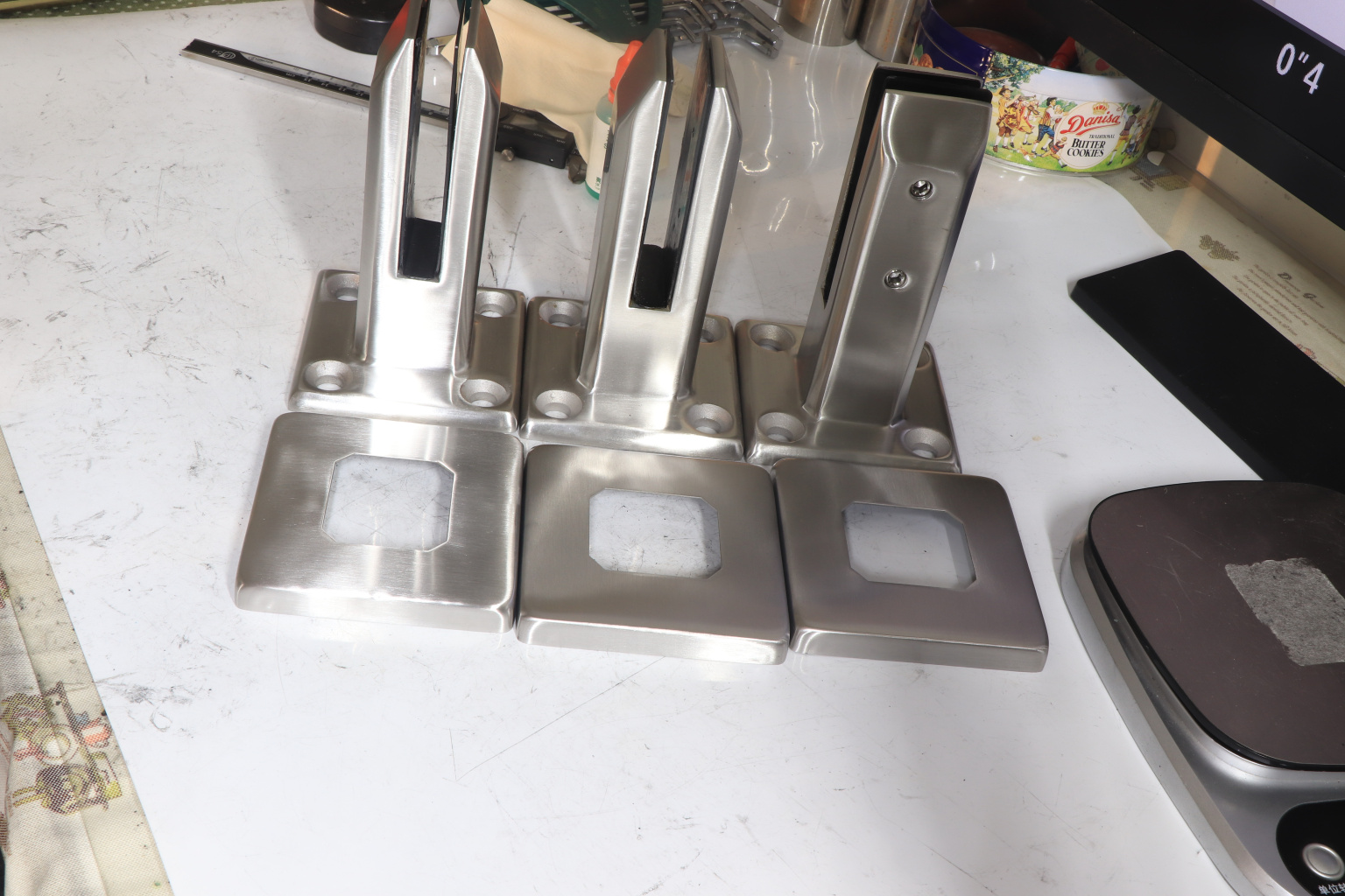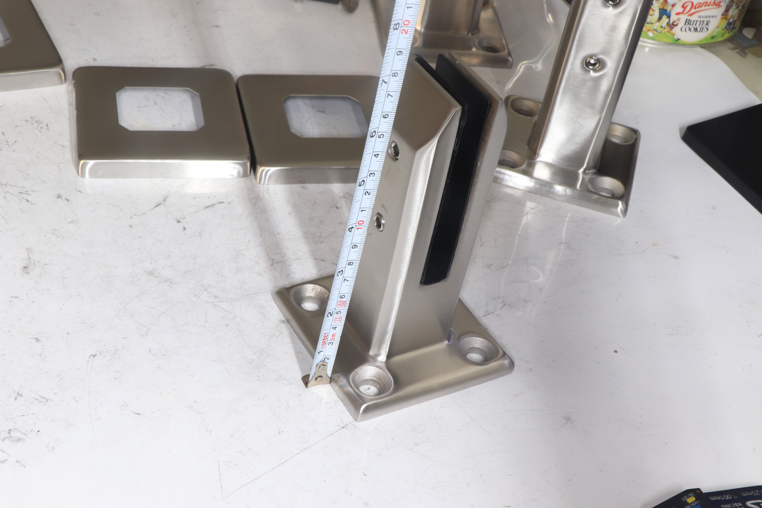 Стеклодержатель напольный 45х50х160 мм, литой, плоский, для стекла 10-12 мм, без сверления, нержавеющая сталь AISI 304, шлифованная k275-7