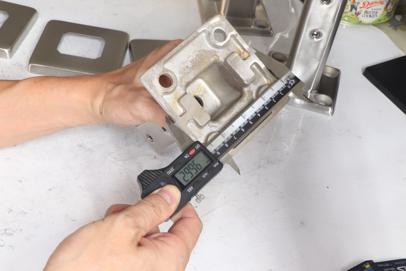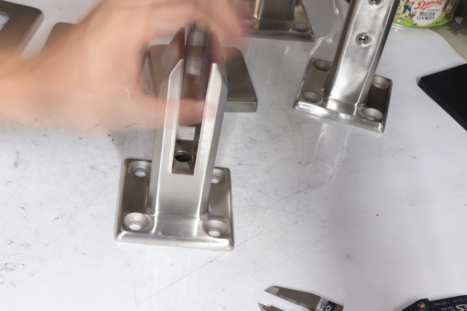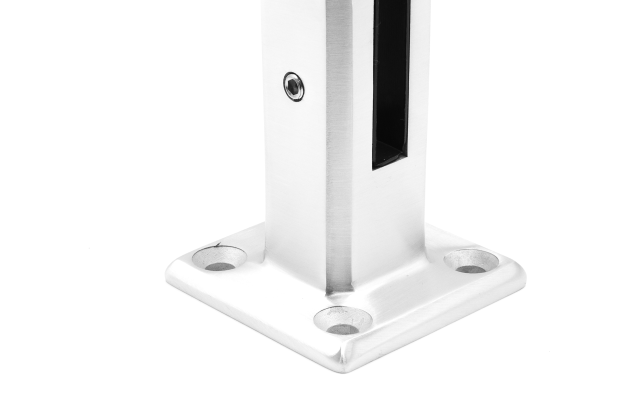 Стеклодержатель напольный 45х50х160 мм, литой, плоский, для стекла 10-12 мм, без сверления, нержавеющая сталь AISI 304, шлифованная. Так же вам понадобиться для крепежа потайной винт под шестигранник k601-19-120.