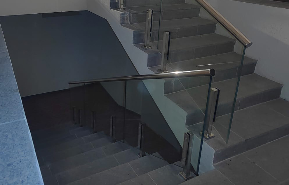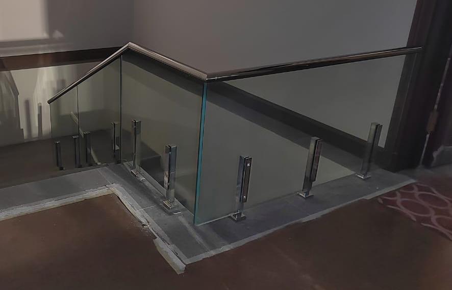 Прижимная пластина фиксирует стекло по всей длине пластины и позволяет более жестко держать ограждение. Стенки трубы стеклодержателя выполнены из стали толщиной 5 мм, что выгодно выделяет нашу модель на фоне конкурентов, которые делаются из трубы 1.5 мм.