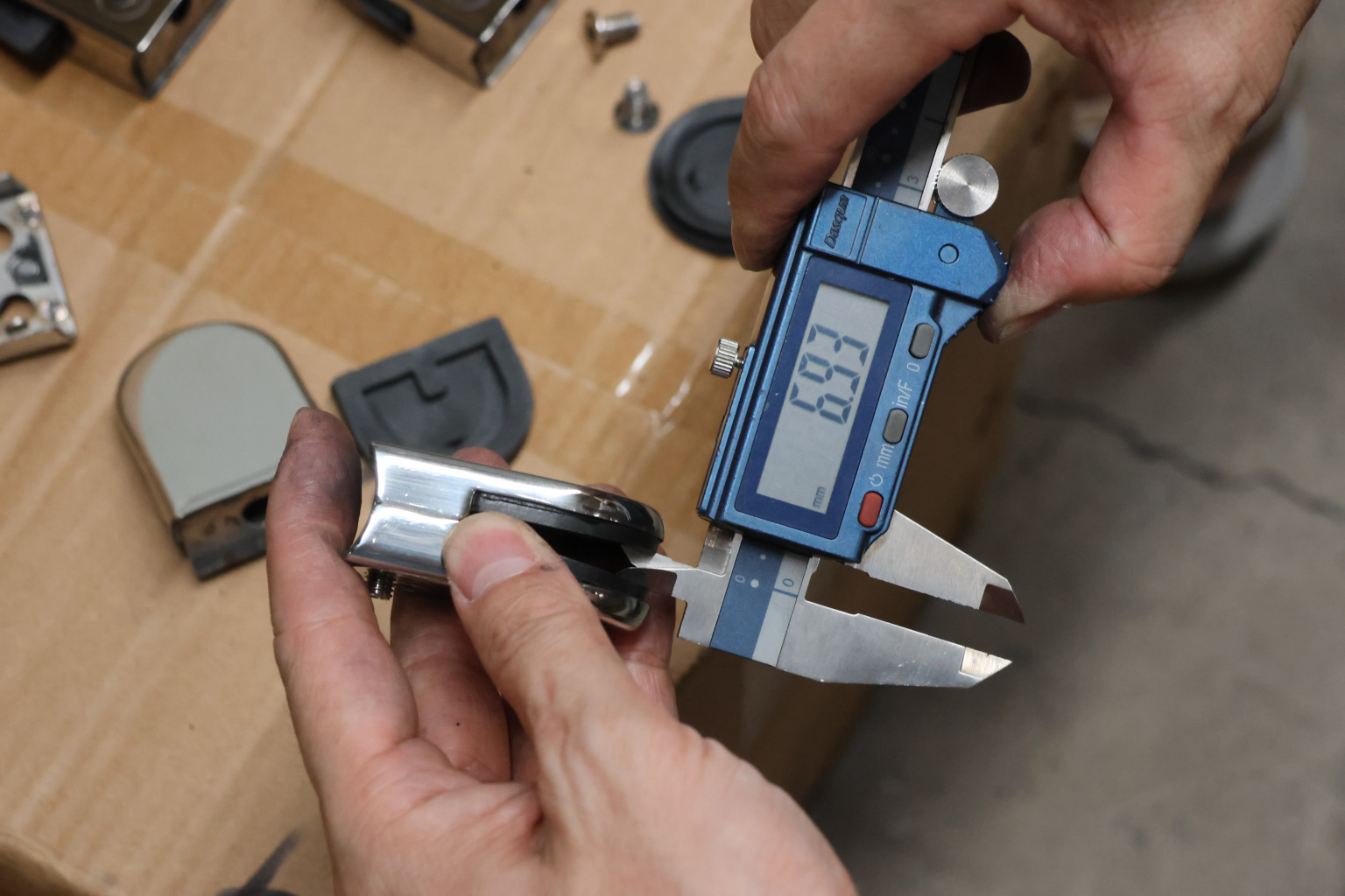 Стеклодержатель штампованный под стекло 8мм (4+4 мм), под стойку Ø38.1 мм 40х22х54, полированный (AISI 304) k538-2