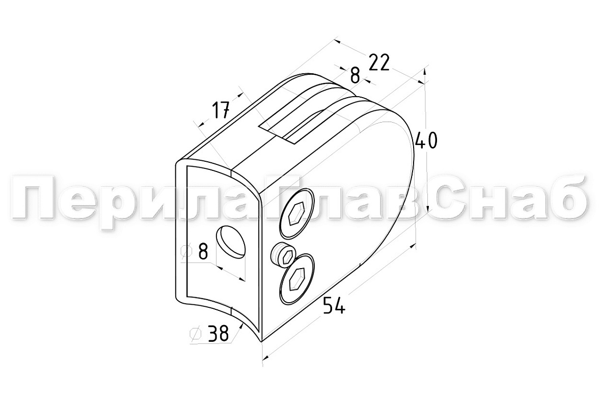 Это бюджетный зажимной стеклодержатель на рынке собственно производства компании ПерилаГлавСнаб. Отлично подходит для быстрого монтажа ограждений со стеклом толщиной 8 мм на круглую стойку Ø38.1 мм. По виду полностью повторяет свой аналог k038, но бюджетнее. Отличие в том, что он выдерживает нагрузку на 10 кг меньше, чем предшественник.
