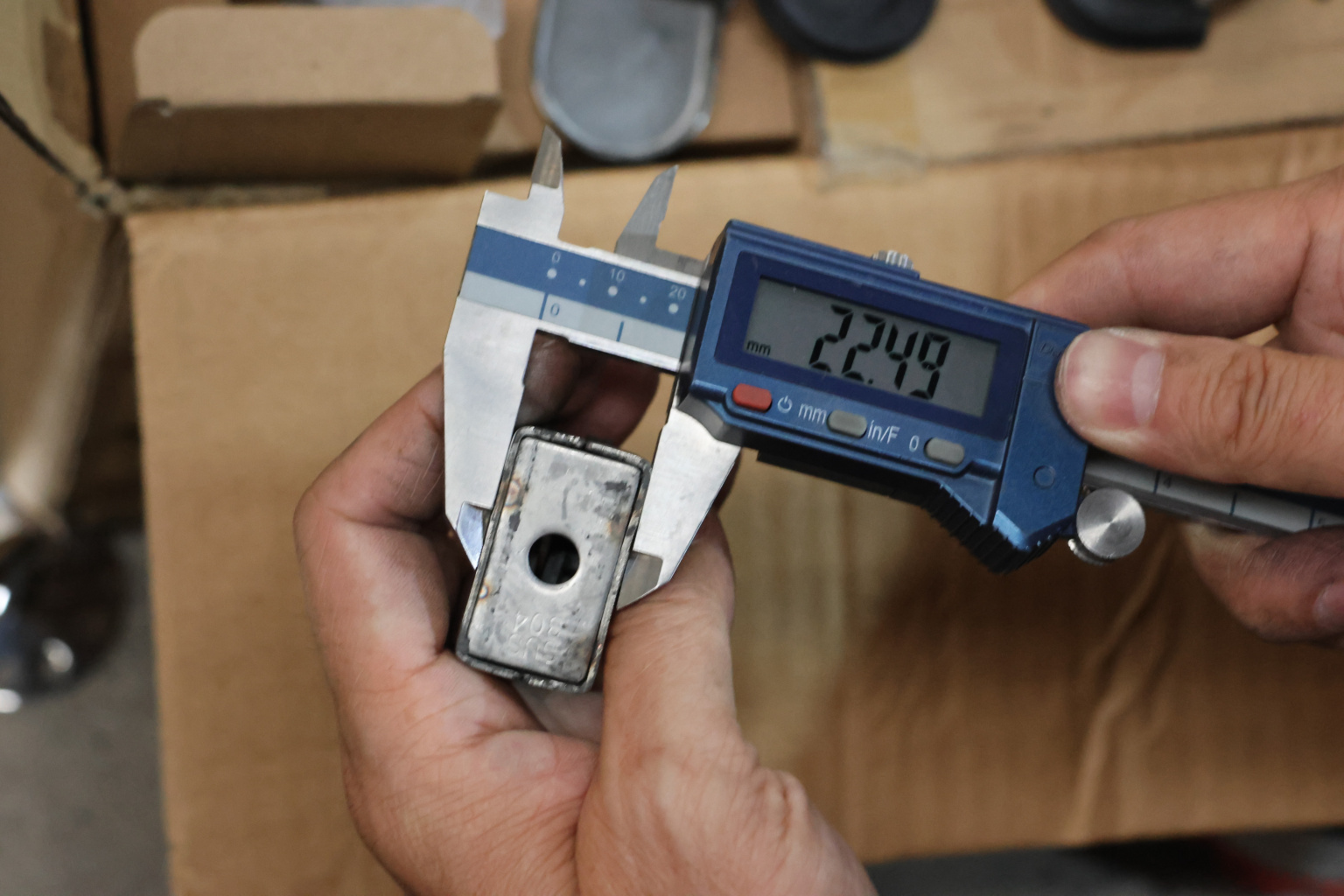 Наконечник палец на стойку из профильной трубы 40х40 мм, с регулируемым ложементом под поручень Ø50.8 мм, полированный, литой, облегченный нержавеющий AISI 304 k239-3