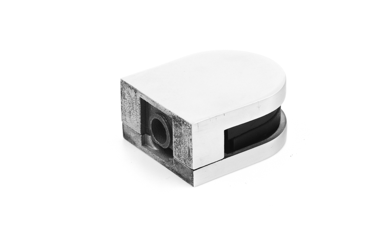 Стеклодержатель литой, под стекло 8 мм. 4+4 мм. на плоскость 40х22х48 полированный (AISI 304) k002-2