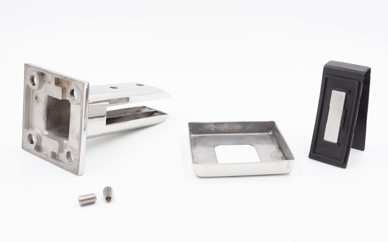 Стеклодержатель штампованный  под стекло 8 мм (4+4 мм), квадратный, под стойку Ø38.1 мм (40х24х48), полированный (AISI 304) k351 купить в Новосибирске