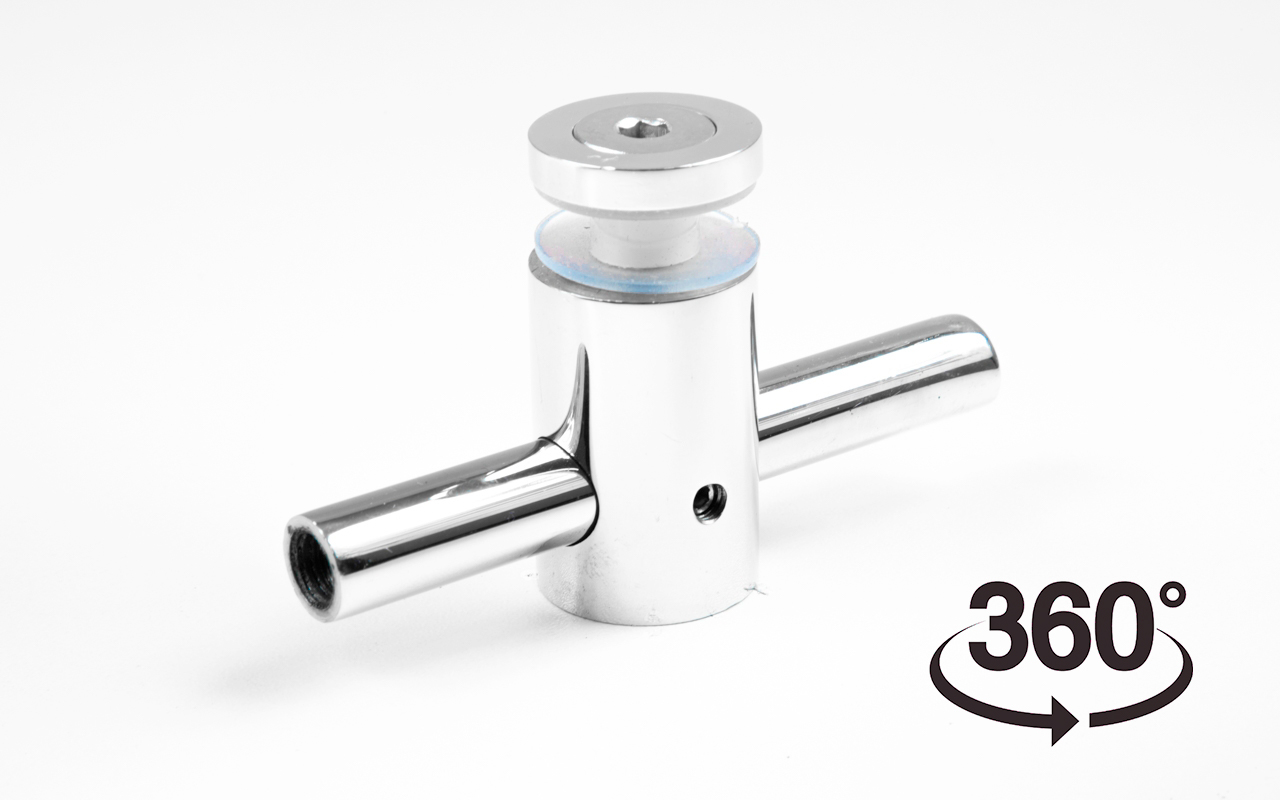 Спайдерный стеклодержатель для стекла 10 мм (5+5 мм), полированный, регулируемый. Марка стали -  AISI 201