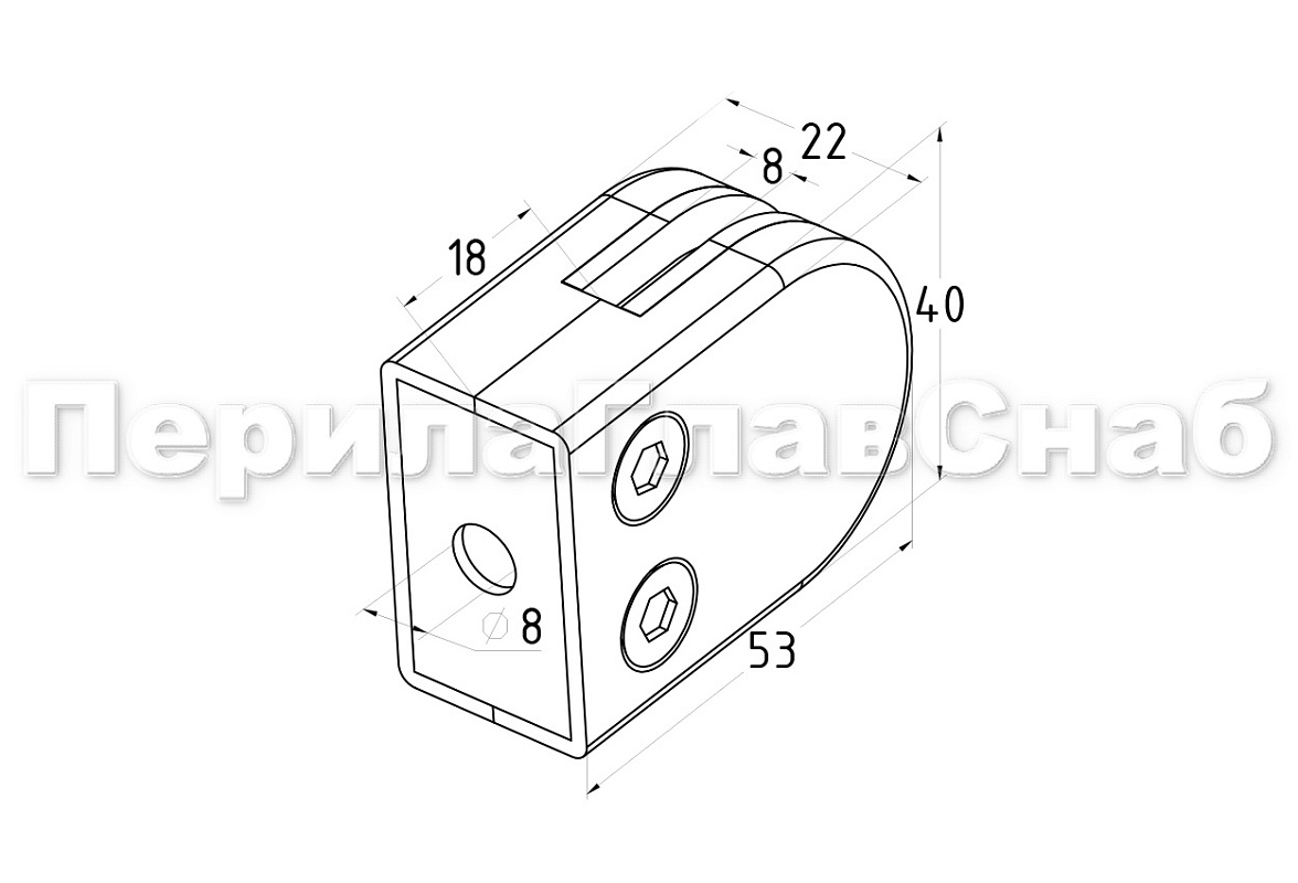 k039 стеклодержатель штампованный под стекло 8 мм? на плоскость 40х22х53 полированный. Марка стали  AISI 304