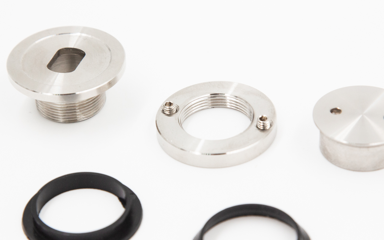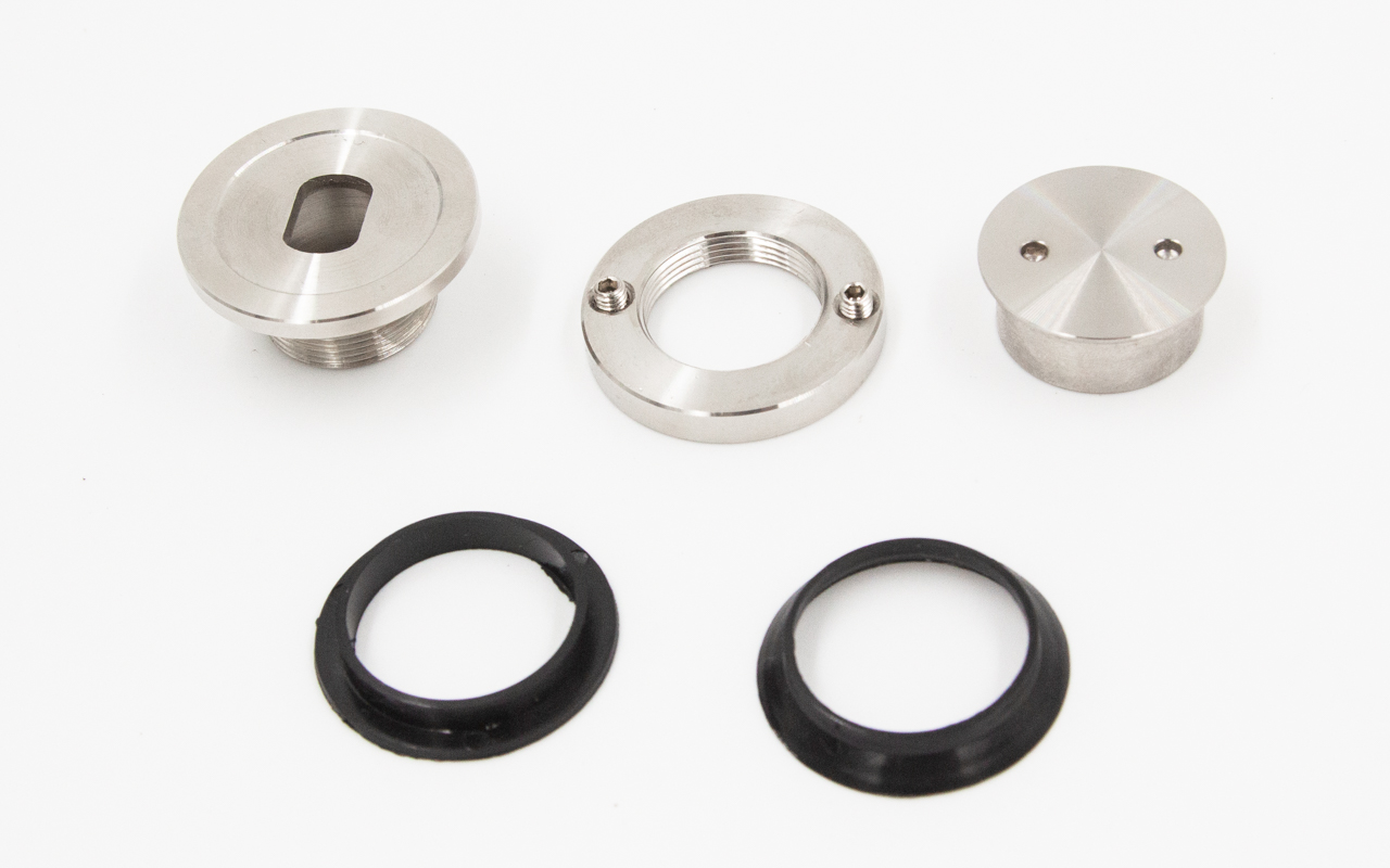 откручиваем "хрюшку" с помощью ключа k367, устанавливаем фланец к стене с помощью дюбеля-самореза. Надеваем первую часть уплотнителя, устанавливаем стекло в заранее подготовленный вырез, и закрываем ответной частью "хрюшки" с уплотнителем, затягиваем обратно стекло.