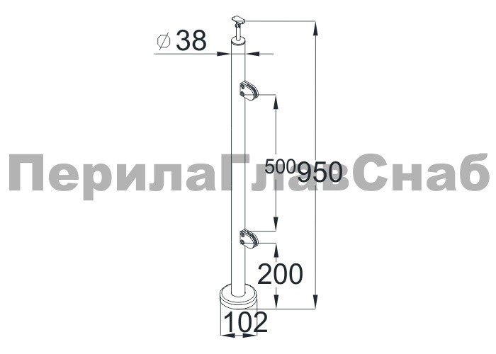 Стойка круглая Ø38.1: 2 штамп. зажимных стеклодержателя, полированная, высота 950 мм (AISI 201) k726-R