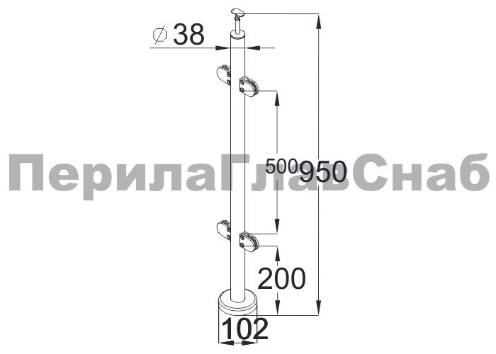 Стойка круглая Ø38.1: 4 штамп. стеклодержателя, полированная, высота 950 мм (AISI 201) k728