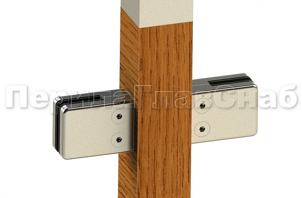 Готовая стойка 40х40х950 мм, деревянная, со вставками из нержавеющей стали 2х100 мм с 4 зажимными стеклодержателями k740-3