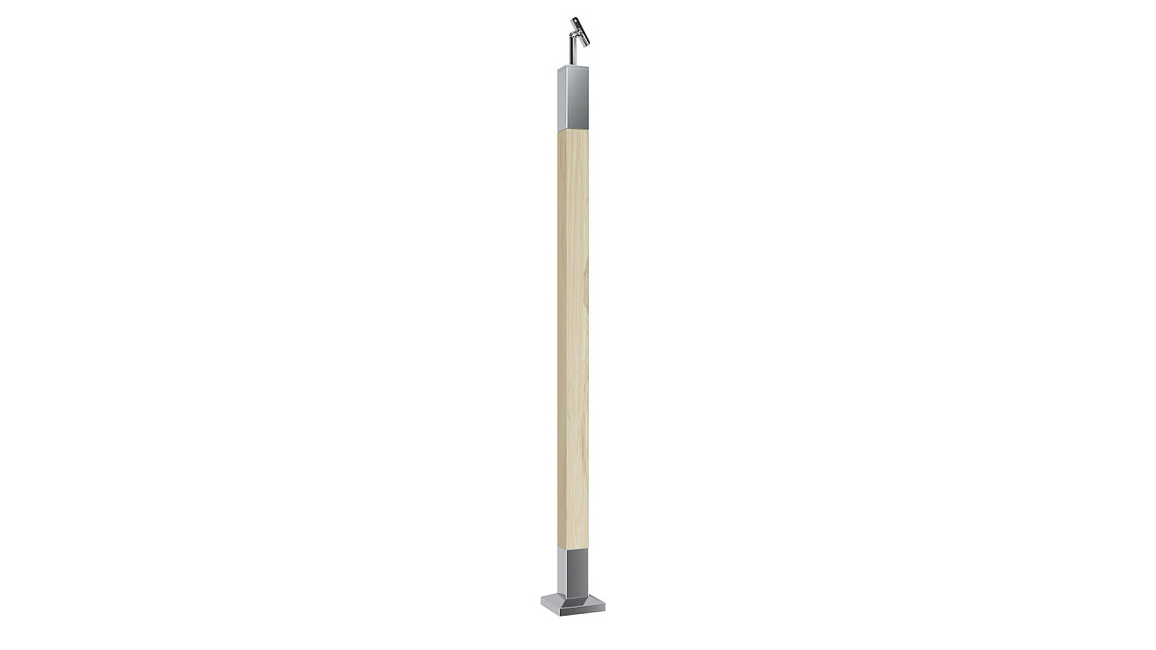 Готовая стойка 40х40х950 мм, деревянная, бук, со вставками из нержавеющей стали 2х100 мм с 3 ригеледержателями k740-16 купить в Новосибирске
