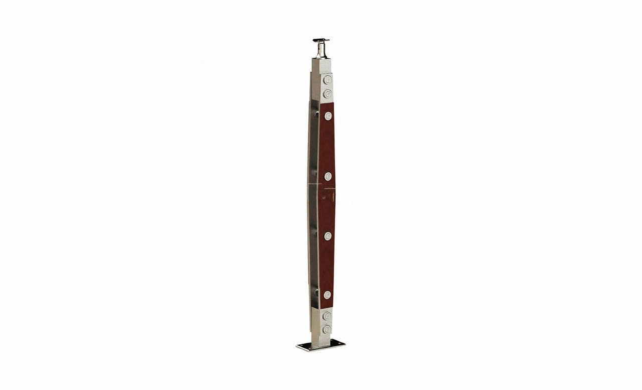 Готовая стойка 40х40х950 мм, деревянная, со вставками из нержавеющей стали 2х100 мм с 2 зажимными стеклодержателями k740-4-R купить в Новосибирске