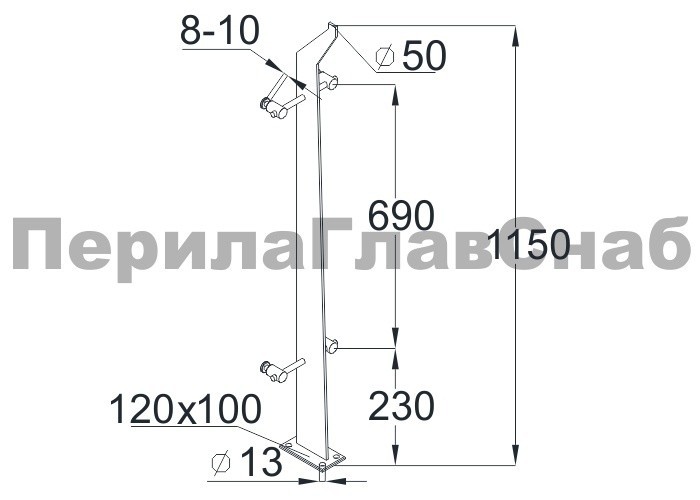 Готовая стойка Ø38,1х950 мм деревянная, со вставками из нержавеющей стали 2х100 мм с 2 стеклодержателями k741-2-L купить в Новосибирске