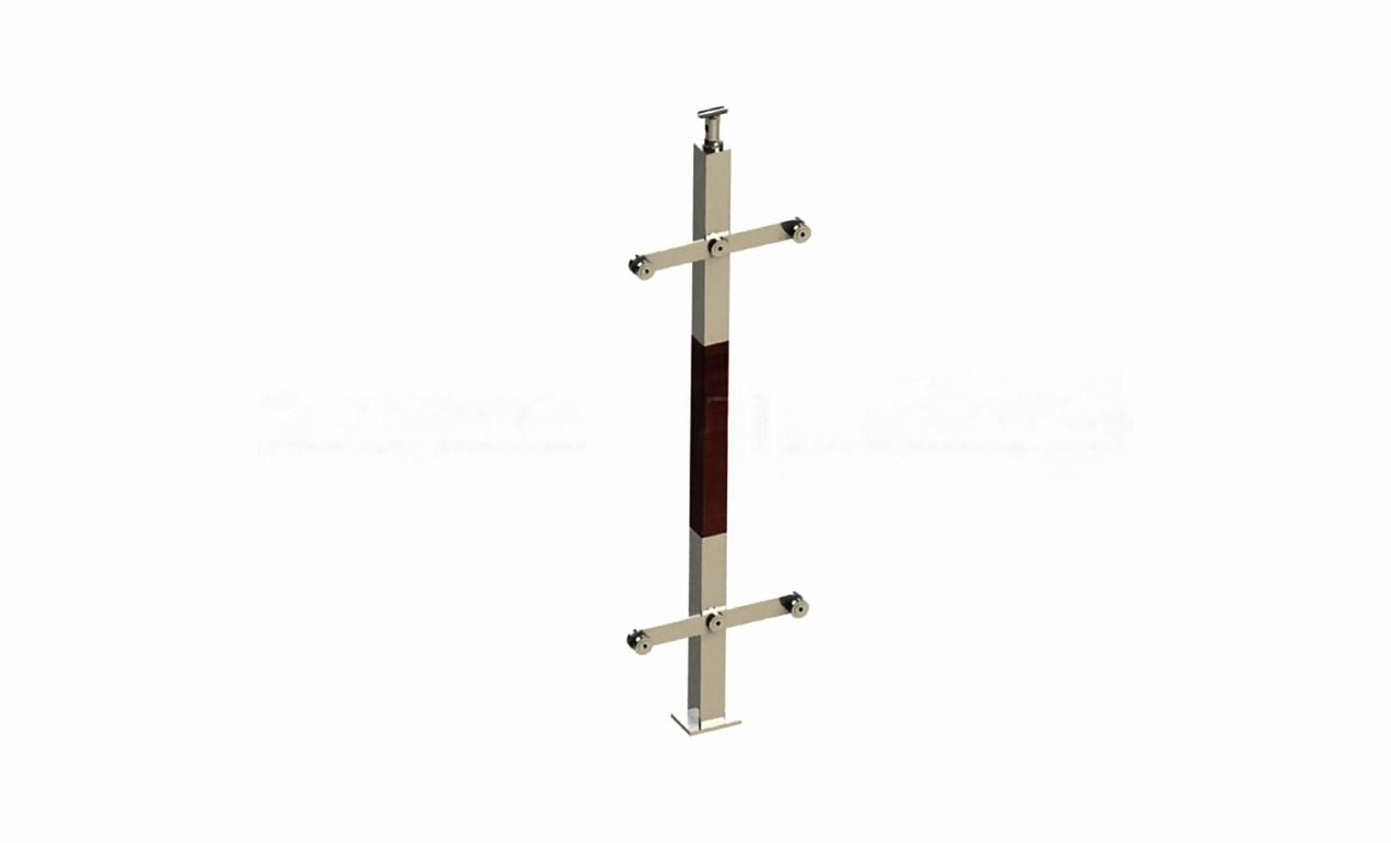 Готовая стойка Ø38,1х950 мм деревянная, со вставками из нержавеющей стали 2х100 мм с 2 стеклодержателями k741-2-L купить в Новосибирске