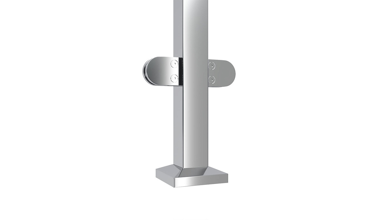 Cтойка квадратная 40х40: 4 литых стеклодержателя, полированная, высота 950 мм (aisi 304)