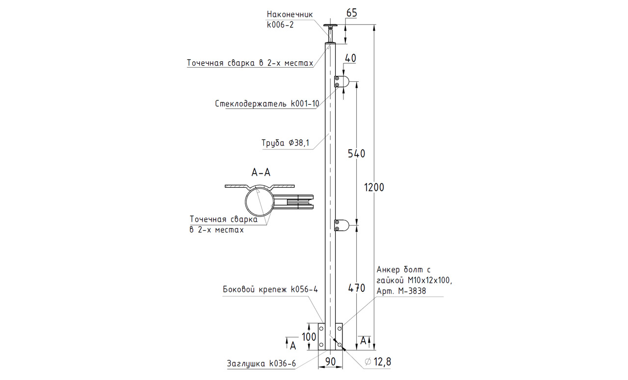 Готовые стойки – это экономия вашего времени и денег. Приобретая готовую стойку Вы можете собрать ограждение сами, не привлекая монтажную бригаду и экономя денежные средства на монтаже. Стойка легко монтируется к торцу. Отверстия под анкер-болт ( М-3129, М-3843, М-3838) либо при помощи шпильки М10 ( М-3963, М-3727, М-3964). Стекло ( С-8003, С-8023, С-8006, С-8047, С-8049) крепится в стеклодержателе за счет отсоединяющейся одной половины стеклодержателя при помощи шестигранника ( k931, k932). Поручень из нержавеющей стали так же легко закрепить при помощи сверла по нержавеющей стали ( k961-03, k961-03.5, k961р-03.5, k961р-03) и самореза ( М-3850, М-3847, М-3215). Либо при помощи заклепки ( М-3214) и винта М6 ( М-3973), для крепления при помощи заклепок необходимо растачивать отверстие в ложементе. Если вы используете пластиковый или деревянный поручень, то его можно закрепить при помощи саморезов ( М-3217)