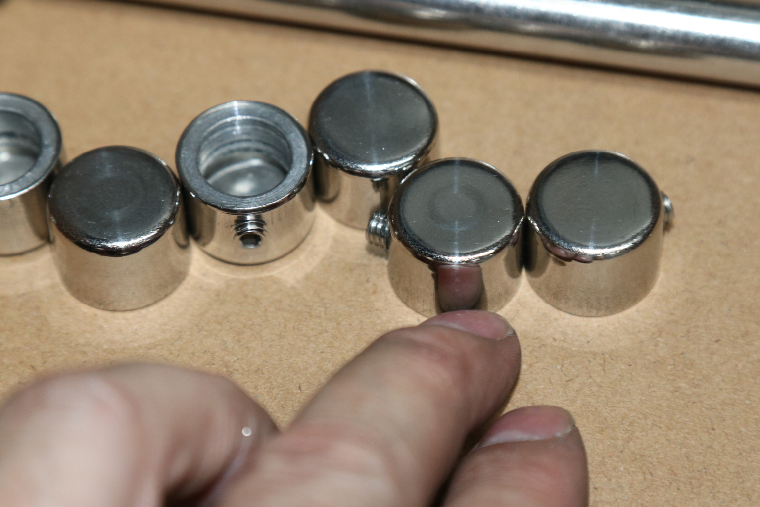 Наконечник палец регул. 65 мм, с ложементом, Ø38.1х1.5хAISI 304 #600 k006-2